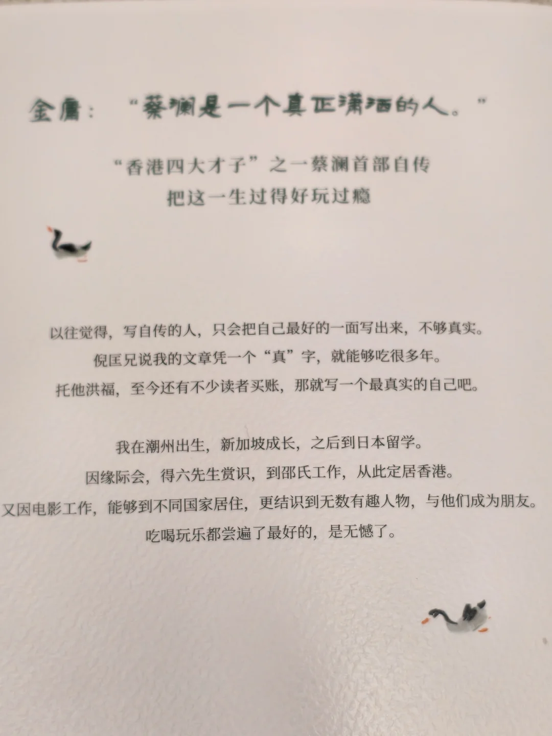 合上这本装帧素朴的小书,感慨万千。蔡澜用他的人生智慧告诉我们:生命不必追求惊天动地的伟业,只需像他笔下的茶汤,在沸腾与冷却之间,在苦涩与回甘之中,慢慢舒展属于自己的形态。