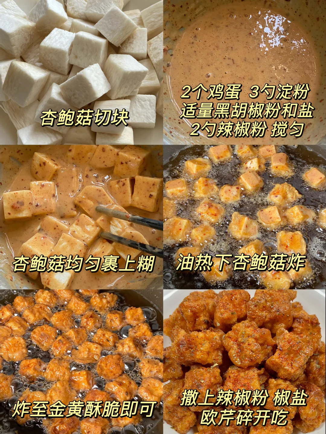 今天分享脆皮的椒盐杏鲍菇,巨好吃! 外酥里嫩,Q弹爽口,香酥美味,一口一块好吃到停不下来了!又香又脆,吃起来满口留香!喜欢吃的姐妹们快来试试吧! 食材:杏鲍菇 鸡蛋 淀粉 做法简单,步骤看图集~