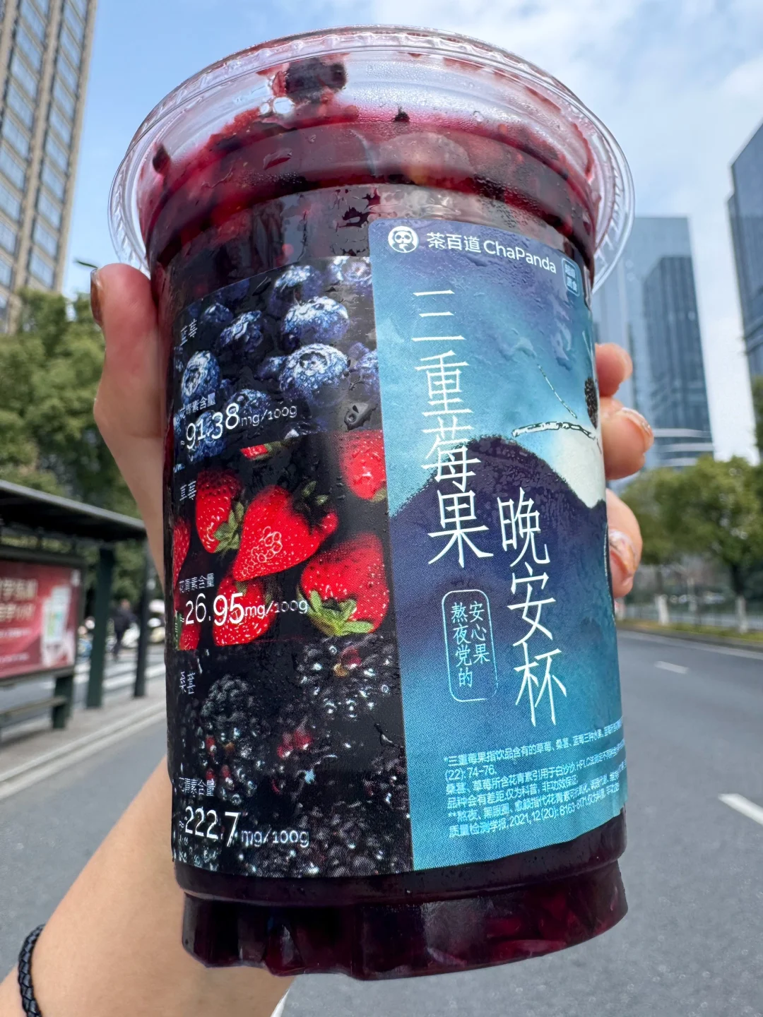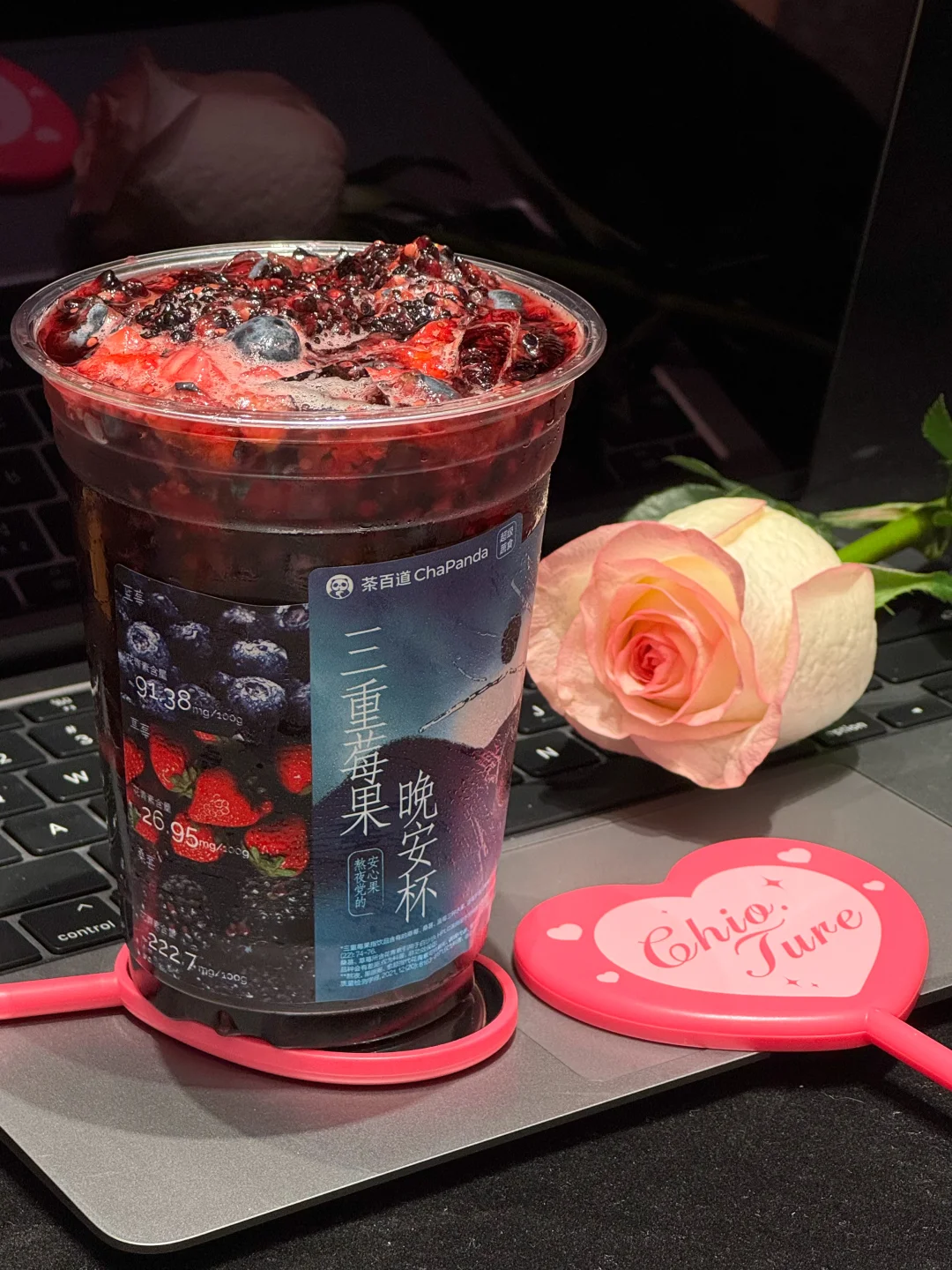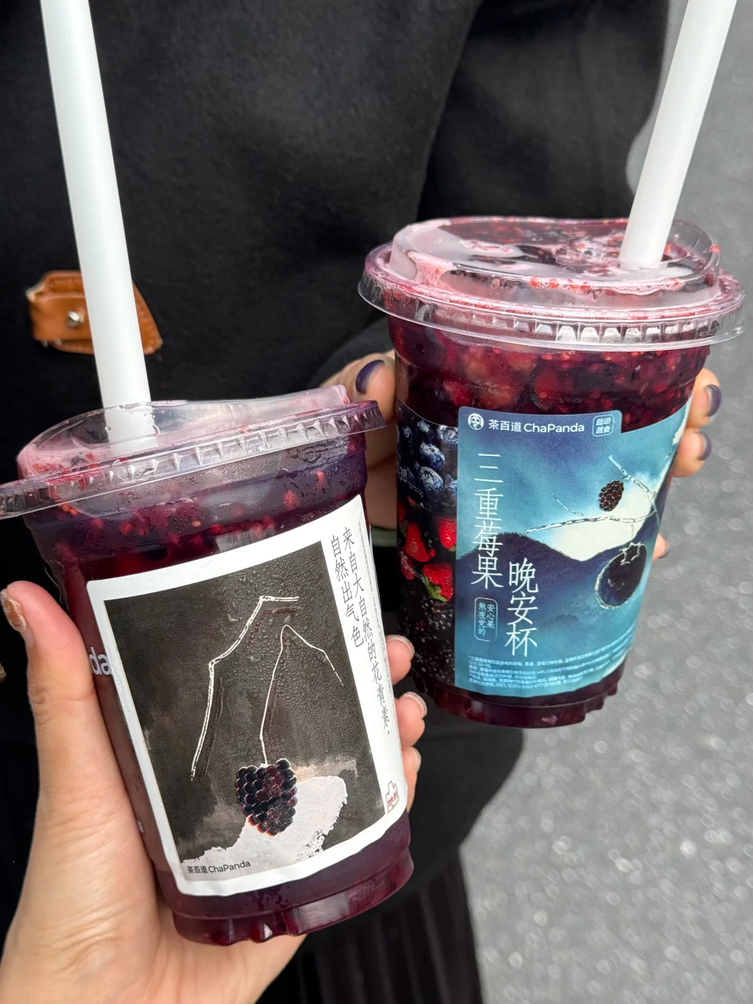 38女神节茶百道联名稚优泉~ 3.1-3.9买“茶逢稚己”单杯套餐送粉嫩嫩的手持镜 尊嘟好好看! 我要沦陷在桑葚新品里了!! ✔三重莓果·晚安杯 蓝莓🫐草莓桑葚三种莓果 每口都能吃到果肉~酸酸甜甜敲多维c一口爆汁 还有乌漆嘛黑!一直都期待这杯回归!满满一杯手拨桑葚 空口吃桑葚的快乐谁懂啊