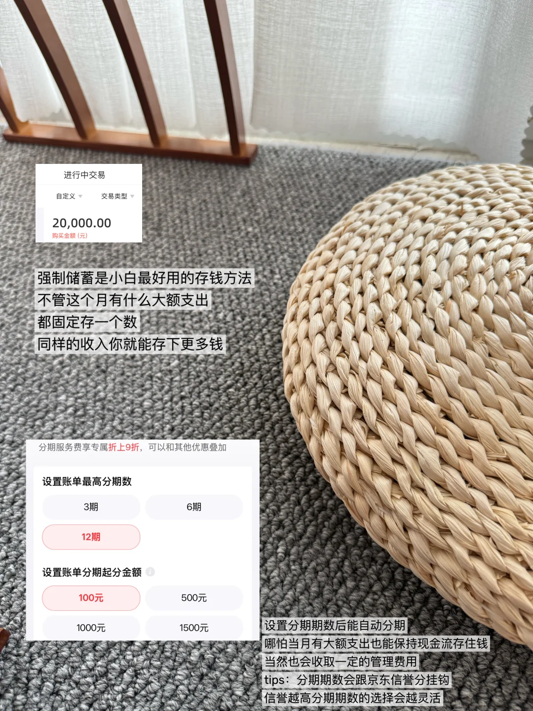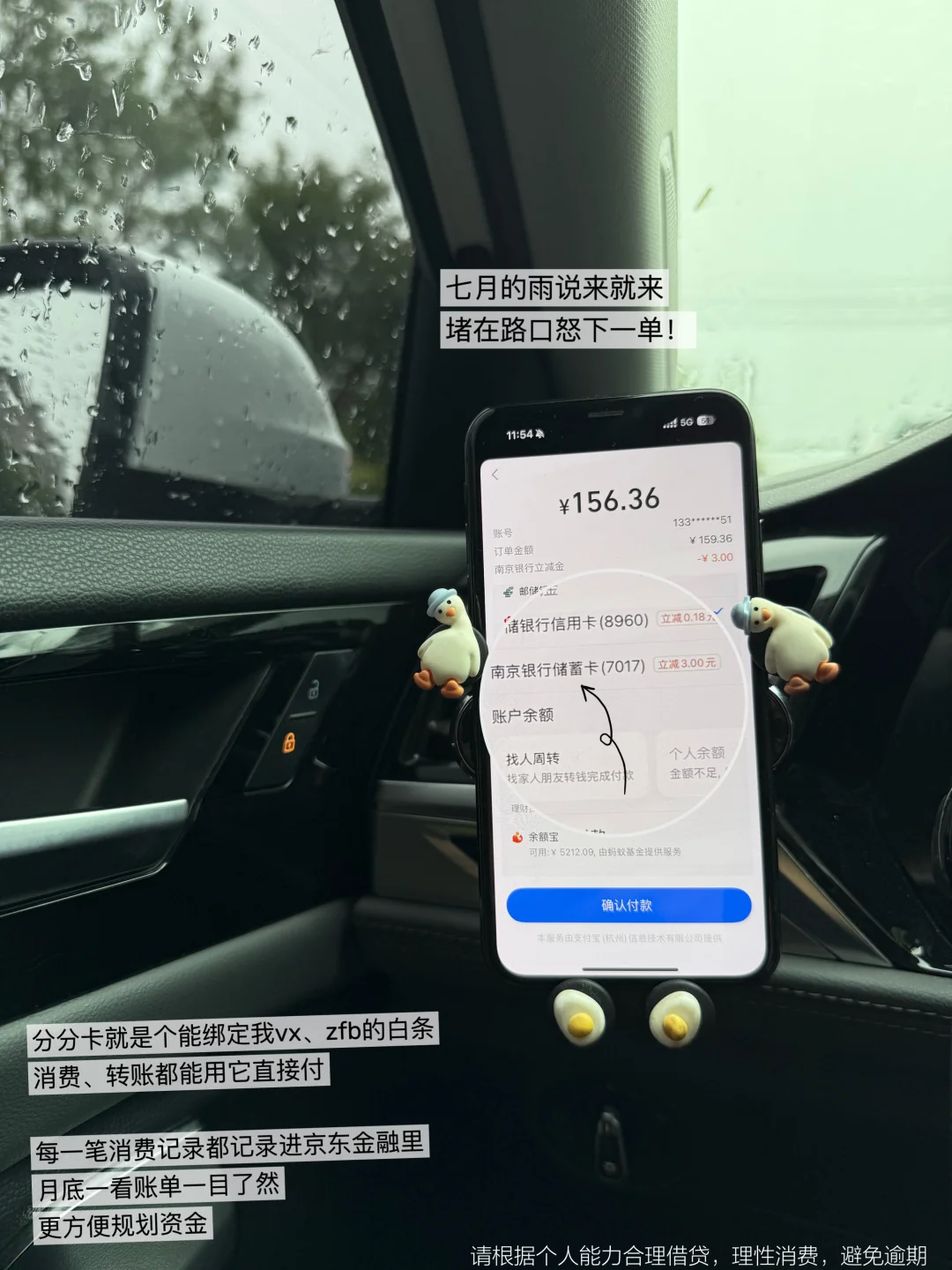 白条分分卡就是个能绑定我vx、zfb的白条,消费、转账都能用它直接付,设置分期期数后能自动分期,所以哪怕当月有大额支出也能保持现金流存住钱,当然也会收取一定的管理费用。每一笔消费记录都记录进JD金融里,月底一看账单一目了然[清单R]更方便规划资金。