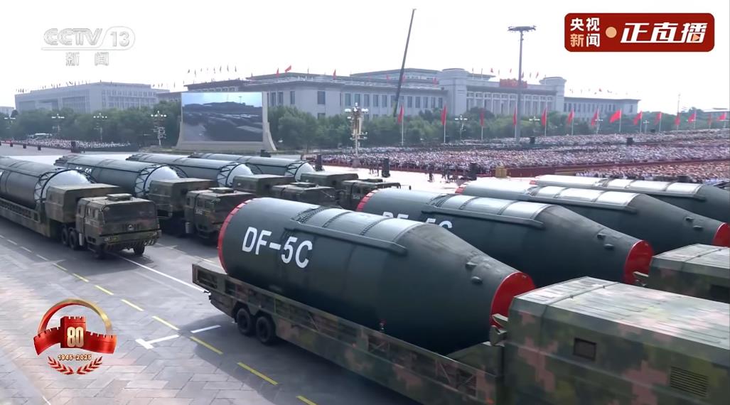 九三大阅兵,世界第一射程核导弹出现!我火箭军东风-5C型超重型、液体燃料洲际弹道导弹,核导弹第二方队,解说词明确说了"打击范围覆盖全球",这可不是随便讲的,这么一说,射程必然不低于15000公里!