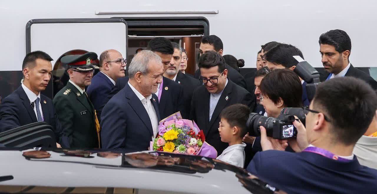 伊朗总统马苏德·佩泽希齐扬从天津乘坐高铁抵达北京