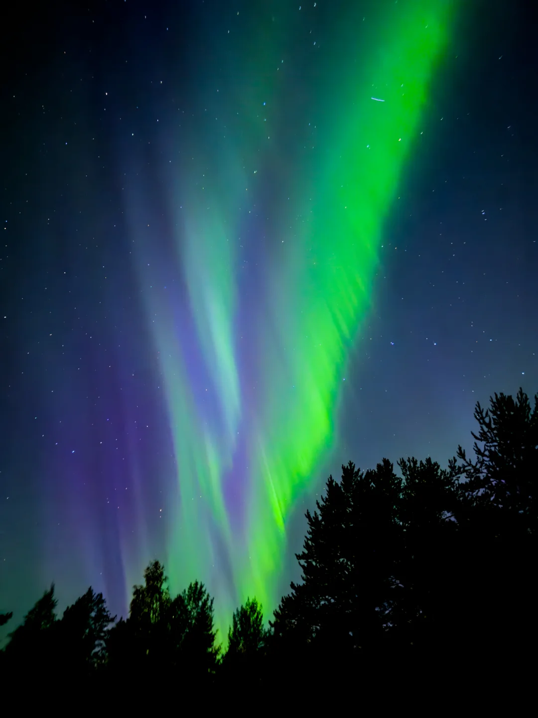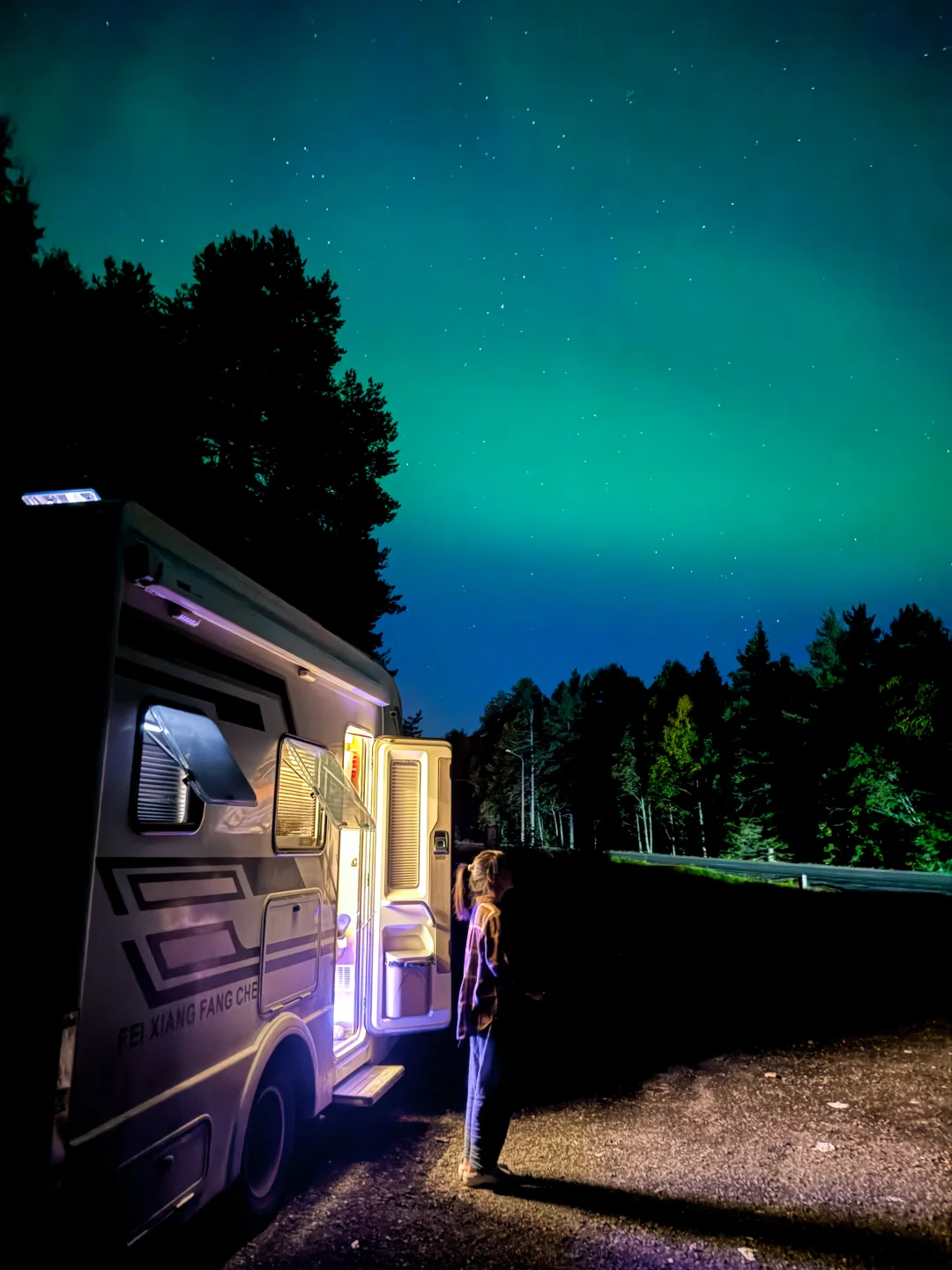 房车自驾欧亚大陆第16天 房车停在距离摩尔曼斯克600公里的路边,抬头一看这不就是传说中的极光吗?完全不需要出门开车去“追极光”,我们的家就是极光观测点。 躺在温暖的房车里,透过天窗看极光,这应该是在野外欣赏极光最舒适惬意的方式。手机记录,图1-6是在额头床的天窗拍摄。 夜里伴着极光昏昏睡去,半梦半醒间睁眼两回,看极光还在窗外跳着,摸起手机拍两张,倒头又睡了。房车额头天窗是一个夏天热冬天冷的配件,我一年也开不了几次隐私帘,更不用说打开天窗了,但有些东西不就是为了这寥寥几个惊艳瞬间而存在的吗?