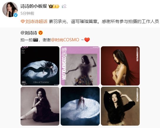 刘诗诗谢感时尚COSMO刘诗诗谢感所有拍摄的工作人员《时尚COSMO》拍的刘诗诗金九封面大片,刘诗诗发文谢感时尚COSMO,感所有拍摄的工作人员!刘诗诗好惊艳!好优雅!