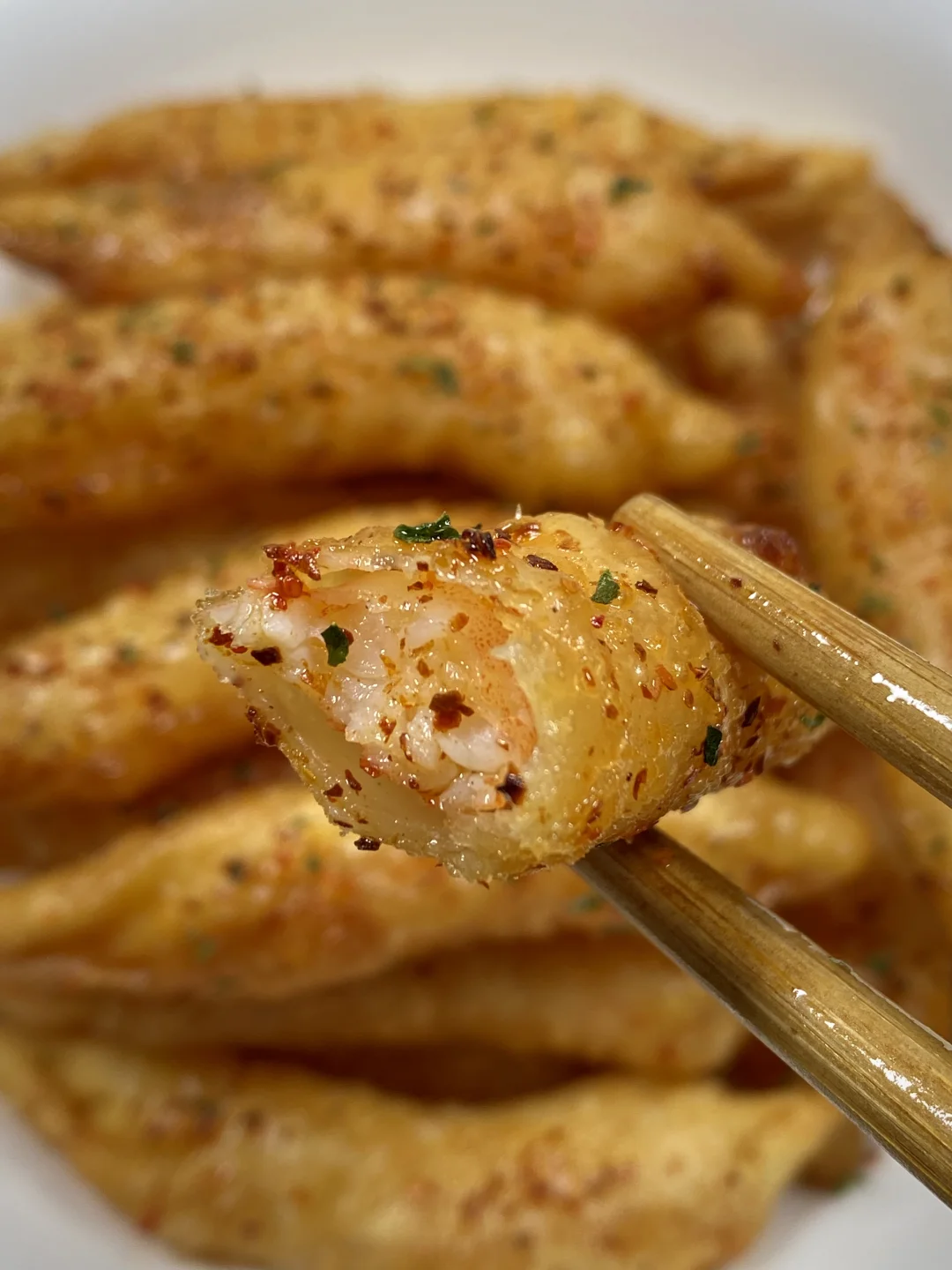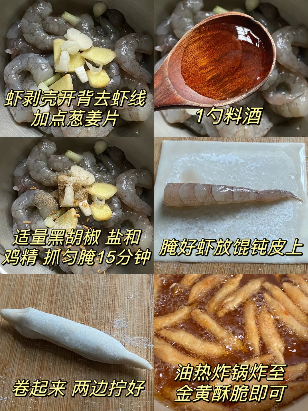 今天分享的是椒盐糖果虾🦐,巨好吃! 外皮咸香酥脆,虾肉鲜嫩弹牙,咬下去“咔嚓”一声,里面的虾肉嫩到爆汁💥。椒盐的咸香完美衬托虾的鲜甜,层次感绝了,一口一个好吃到停不下来了!一上桌就秒光!让你一口爱上[doge] 食材:大虾 馄饨皮 葱姜 做法简单,步骤看图集👆