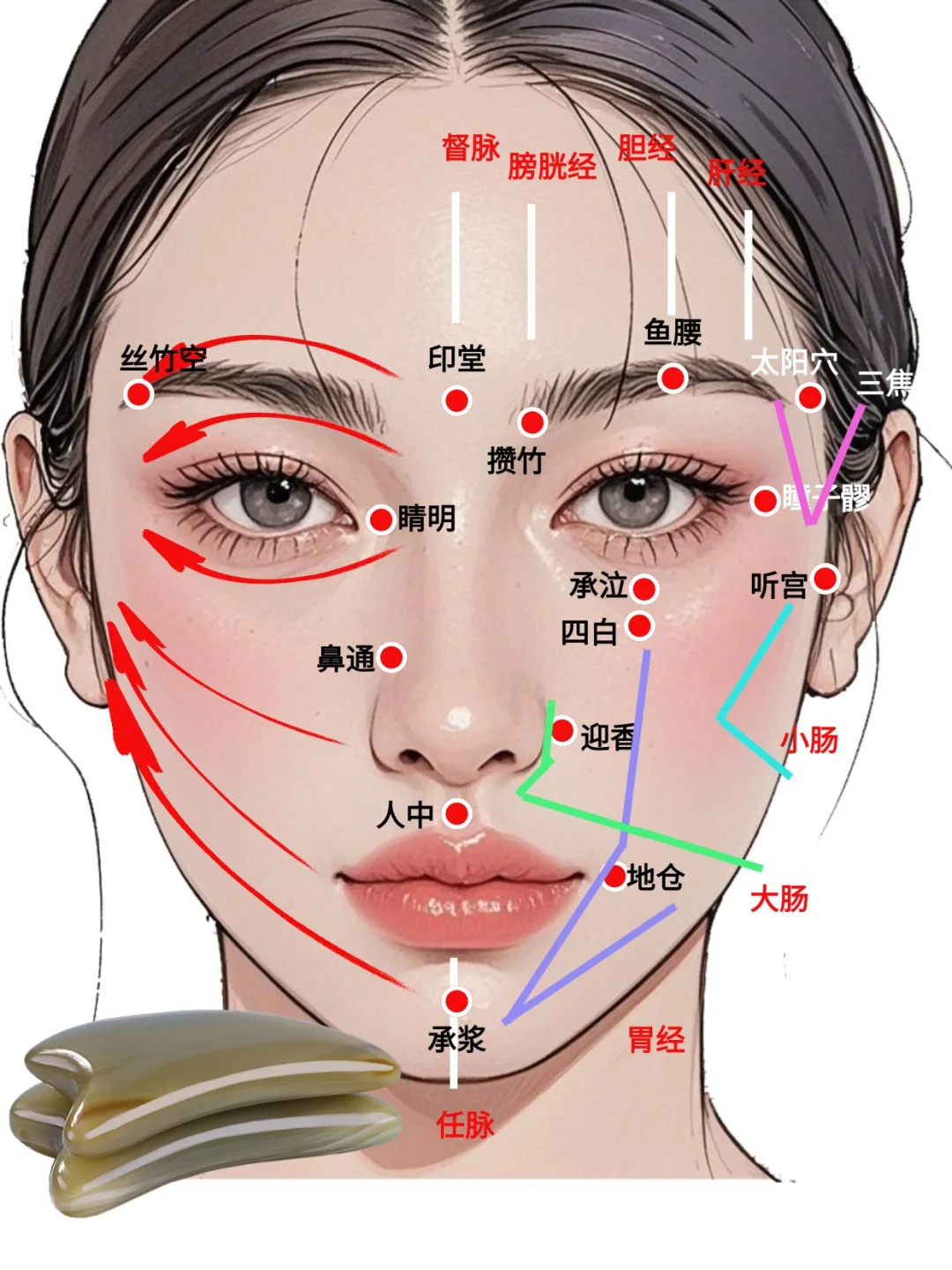 脸部9经络淤堵表现,面部科学刮痧详细教程