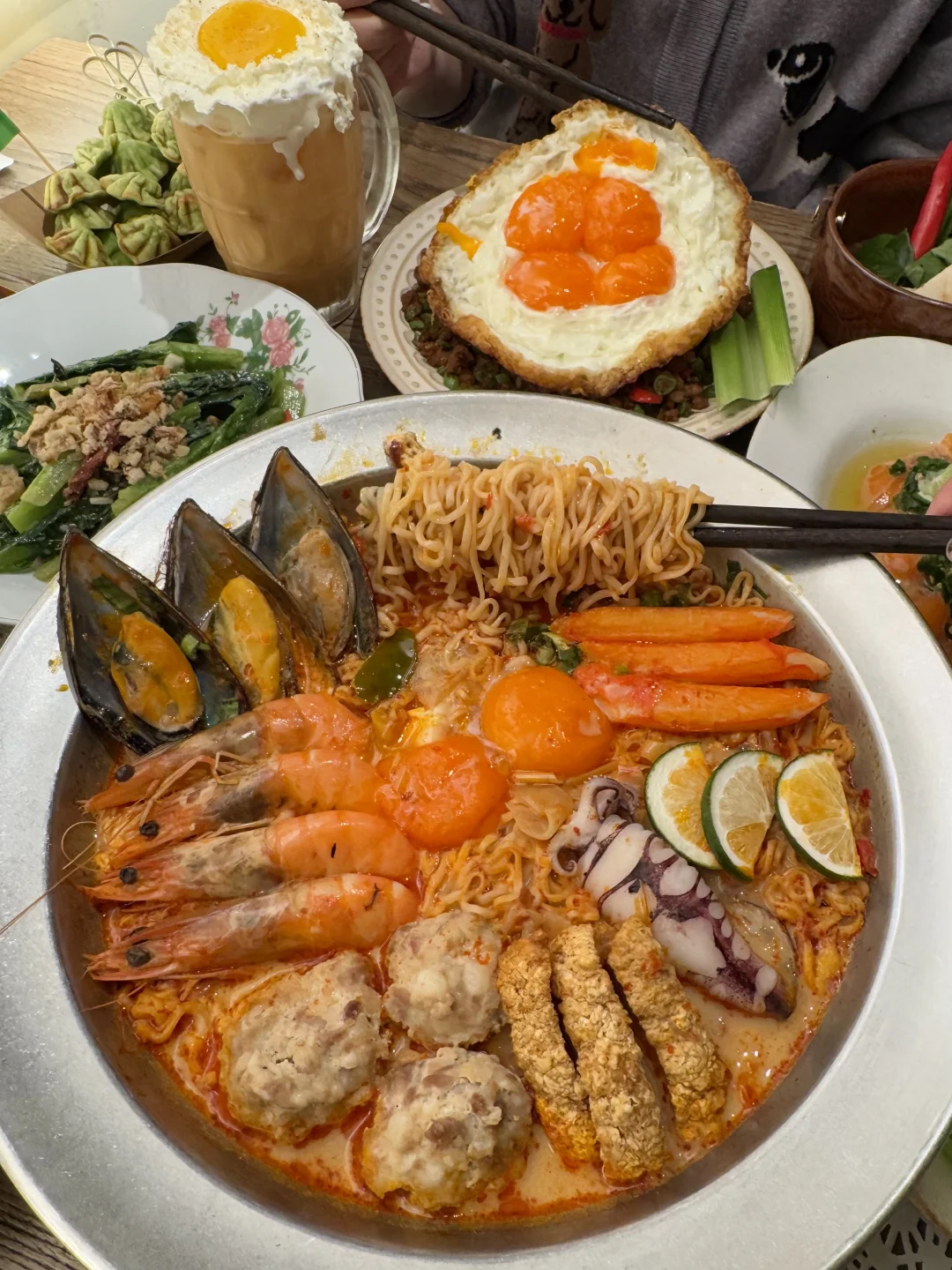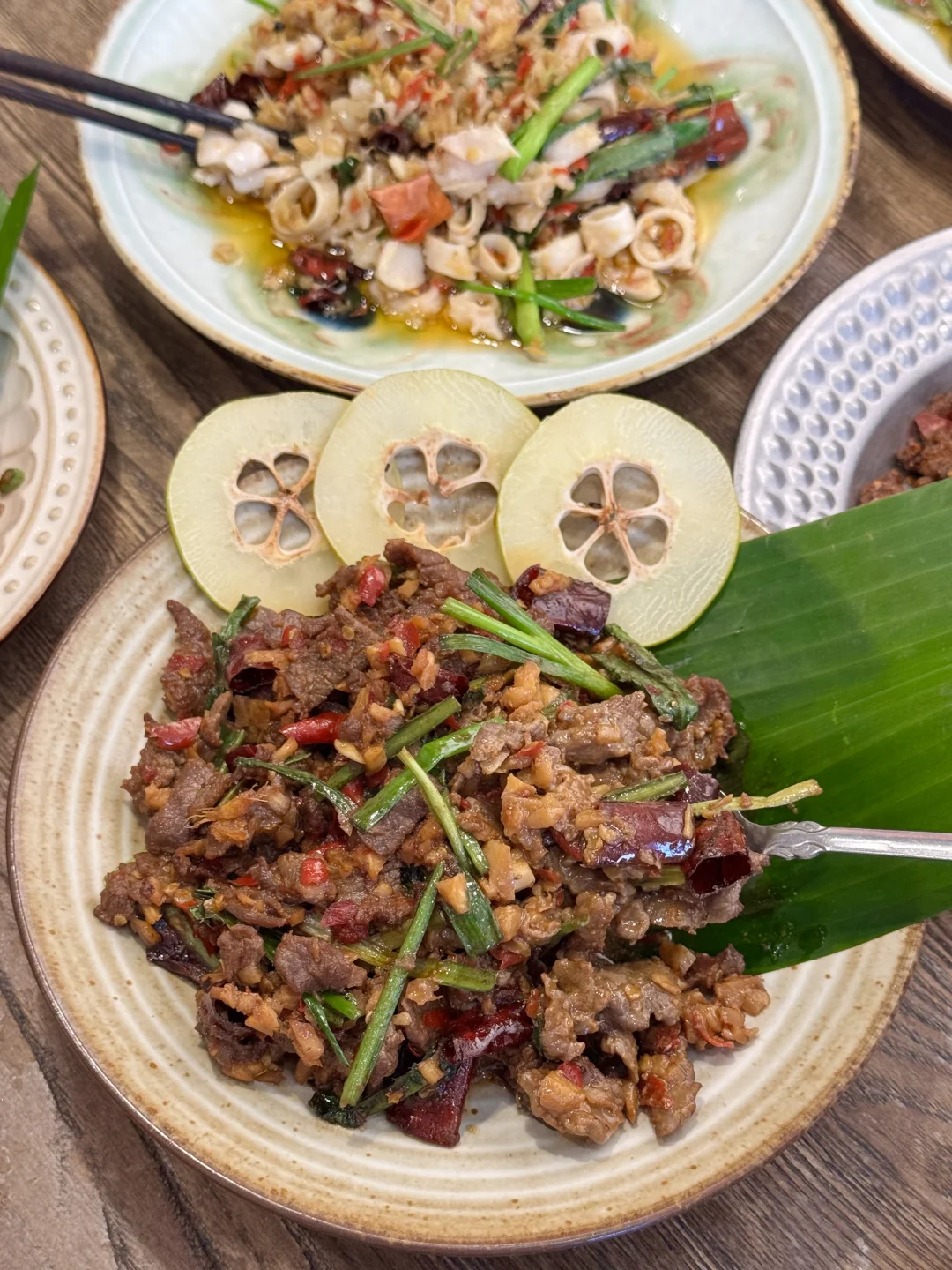 兰纳小屋五刷了!!再一次被好吃到😭 新出的泰式小炒又一次把我拿捏住了🤏!酸辣入味的酸木瓜炒牛肉真的好下饭!还有油炝心管、麻辣牛肉…都好吃不踩雷!🤤 每次来b点的曼谷🇹🇭同款海鲜mama面 满当当的都是料!酸酸辣辣的冬阴功汤底搭配各种海鲜🦐嗦上一口mama面ju过瘾~ 可以喝的芒果糯米饭🥭、斑斓冻椰子冰淇淋🥥、 山竹冰!斑斓小蛋糕!怎么都做的和泰国一样好吃啊!!!