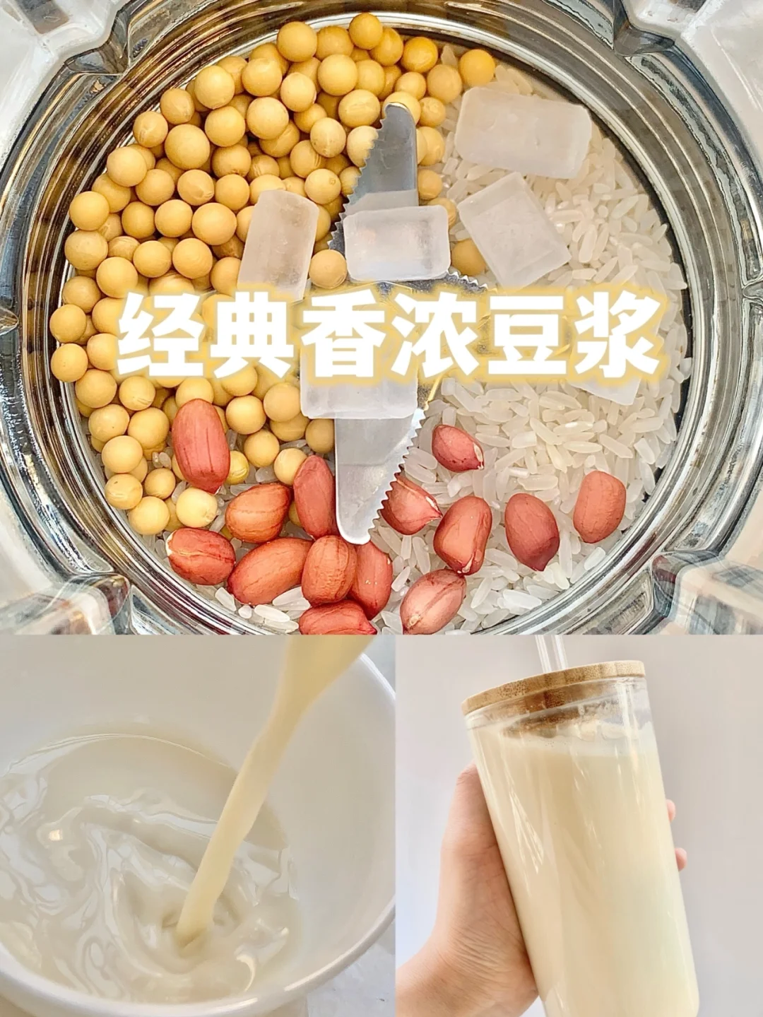黄豆30g+大米20g+花生5g+水800毫升。选择破壁机豆浆模式,完成后加入几颗冰糖颗搅拌均匀,没有冰糖的可以用红枣代替~