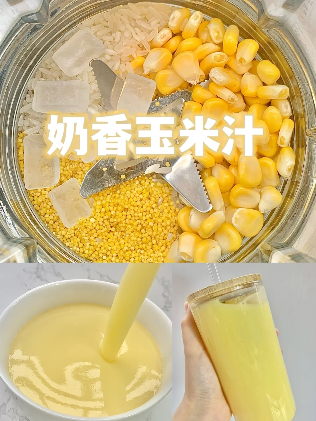 玉米一根+大米15g+小米10g+水800毫升+牛奶100毫升。选择破壁机玉米汁模式,完成后加入牛奶100毫升和几颗冰糖~