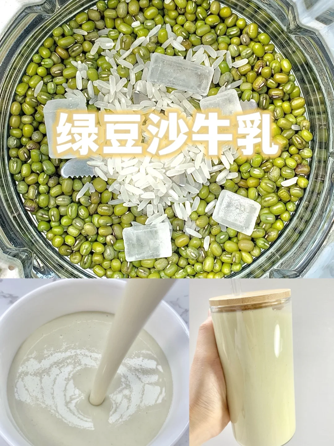 绿豆50g+大米25g+水500毫升。选择破壁机豆浆模式,完成后加入牛奶250毫升和几颗冰糖颗搅拌均匀。