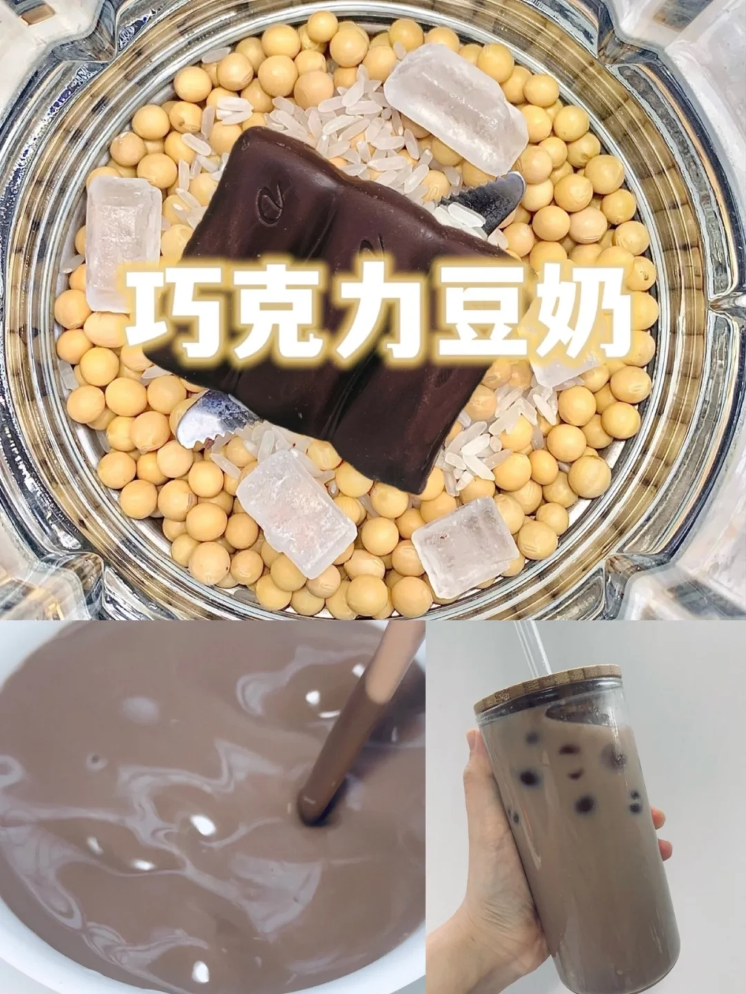 黄豆30g+大米15g+黑巧克力三块+水400毫升+牛奶250毫升。选择破壁机豆浆模式,完成后加入牛奶搅拌均匀