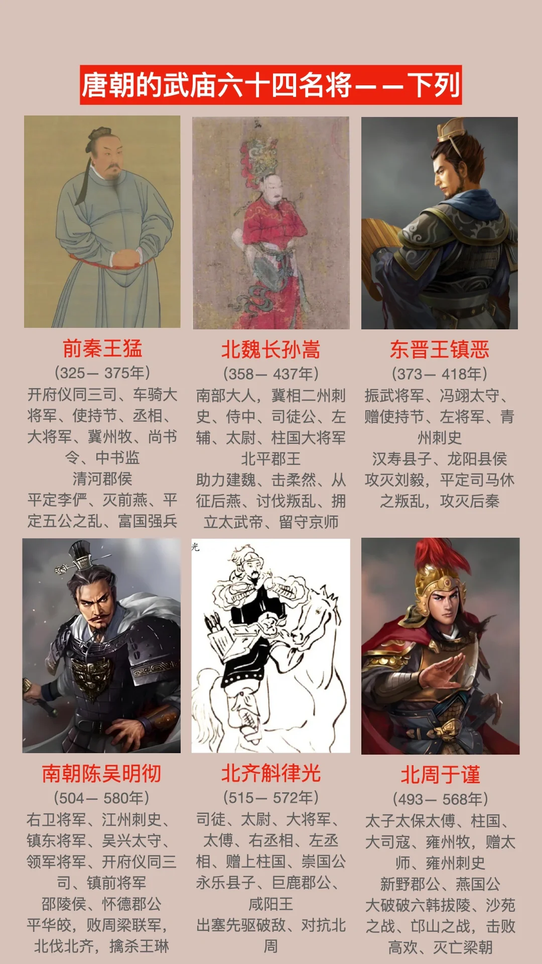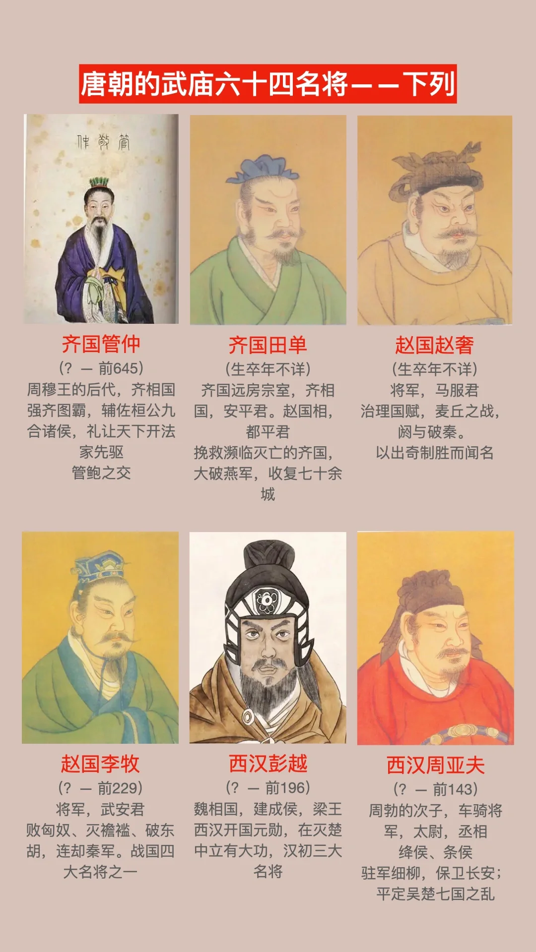 历史 武庙 郭子仪 关羽 张飞 李牧 周勃 周亚夫 卫青 霍去病 孙膑 廉颇 王翦 李广 周瑜