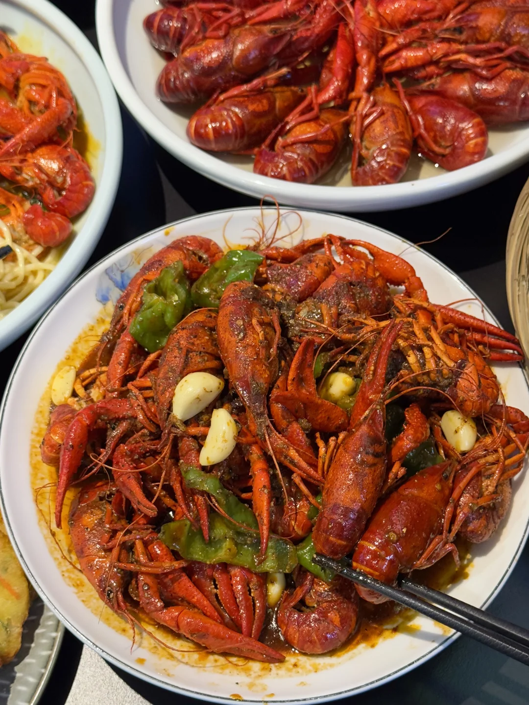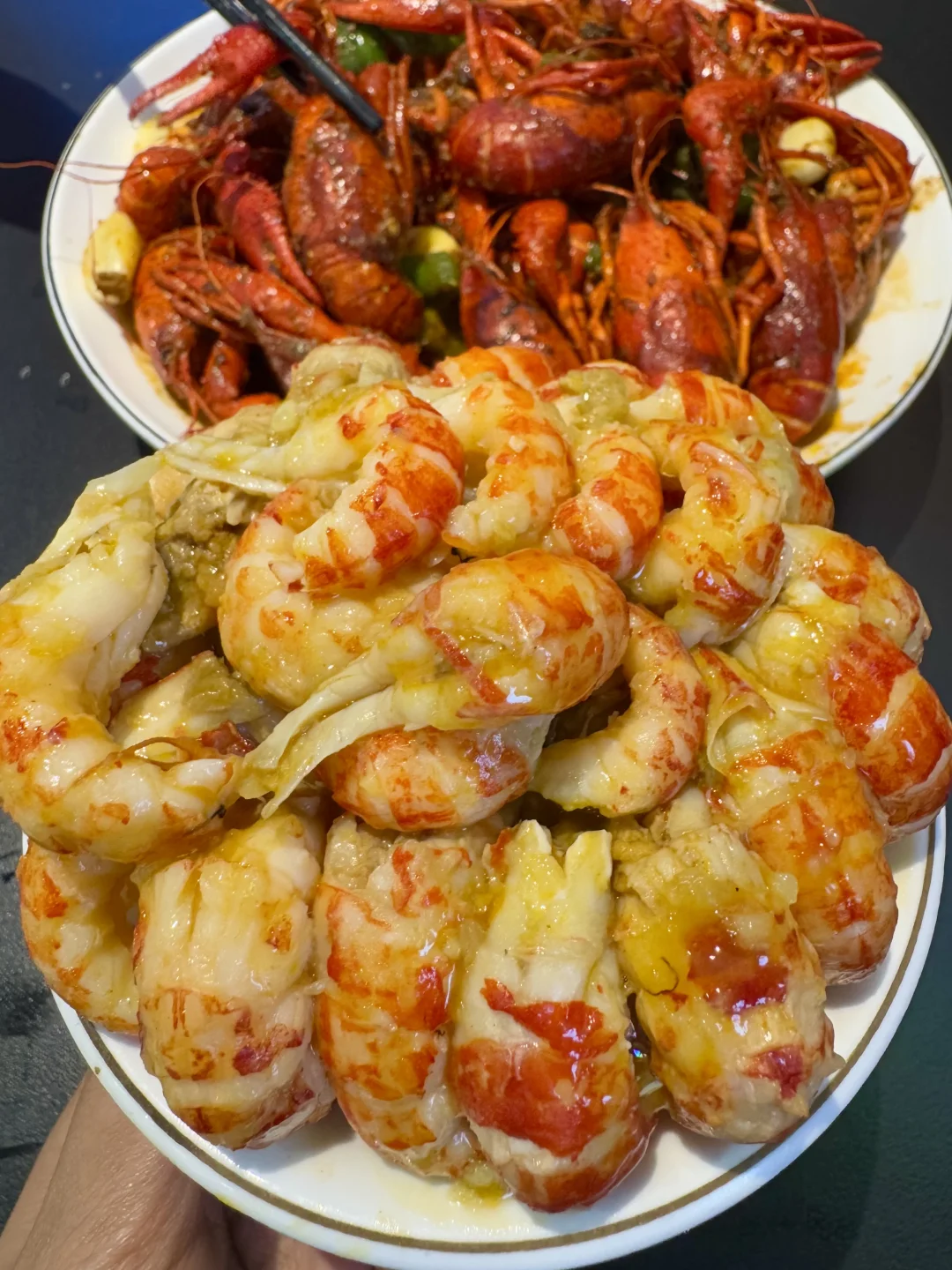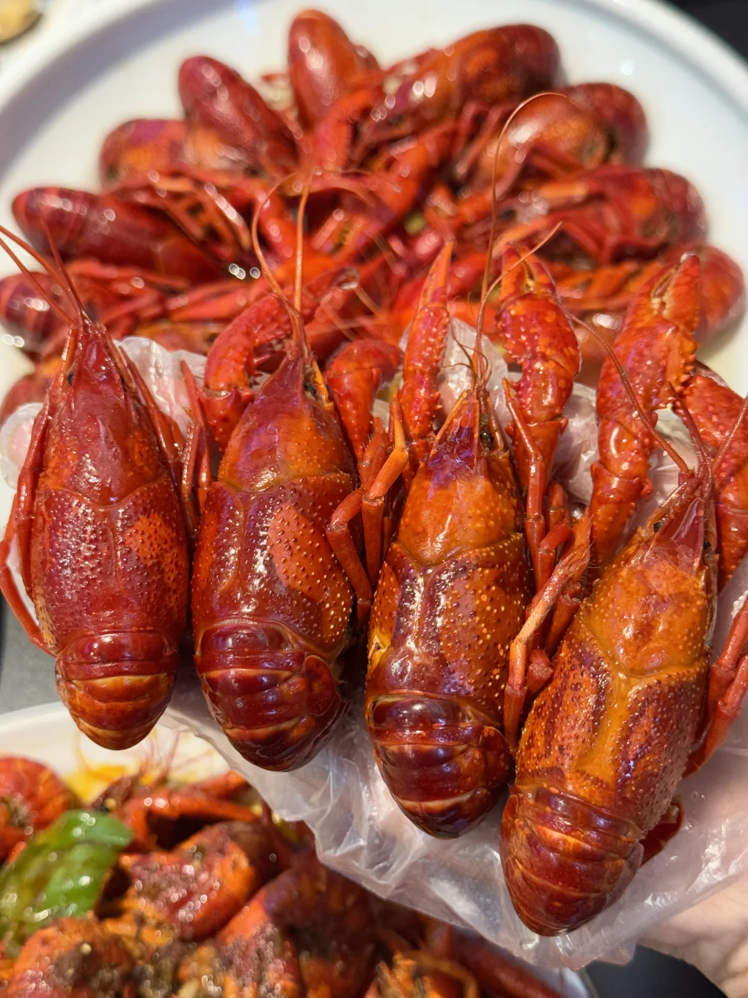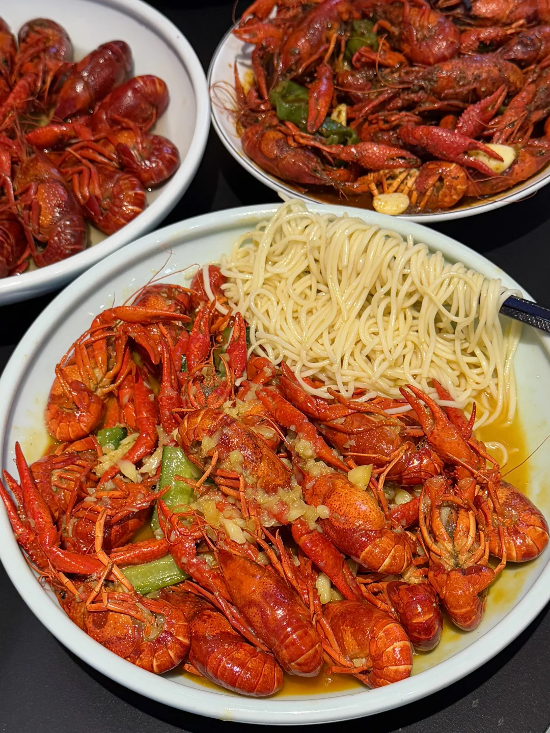 又到了吃小龙虾🦞的季节了!!激动的搓了搓小手🤤坠爱❤️的还是冰镇的!而且肉质紧实每只个头都好大🥹还有十三香的!记得加上一份泡面 小龙虾的汤汁拌面jue了!!!边拨边吃的快乐! 终于吃到章鱼嘴了!一口十个zei过瘾哈哈 还有牙签鱿鱼🦑一口下去香s!好辣好入味🌶️吃完还打包了一份! 红柳羊肉串、现烤小黄鱼、鸡脆骨…烧烤也是闭眼点都好吃😋