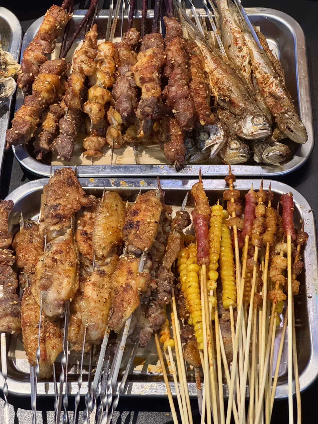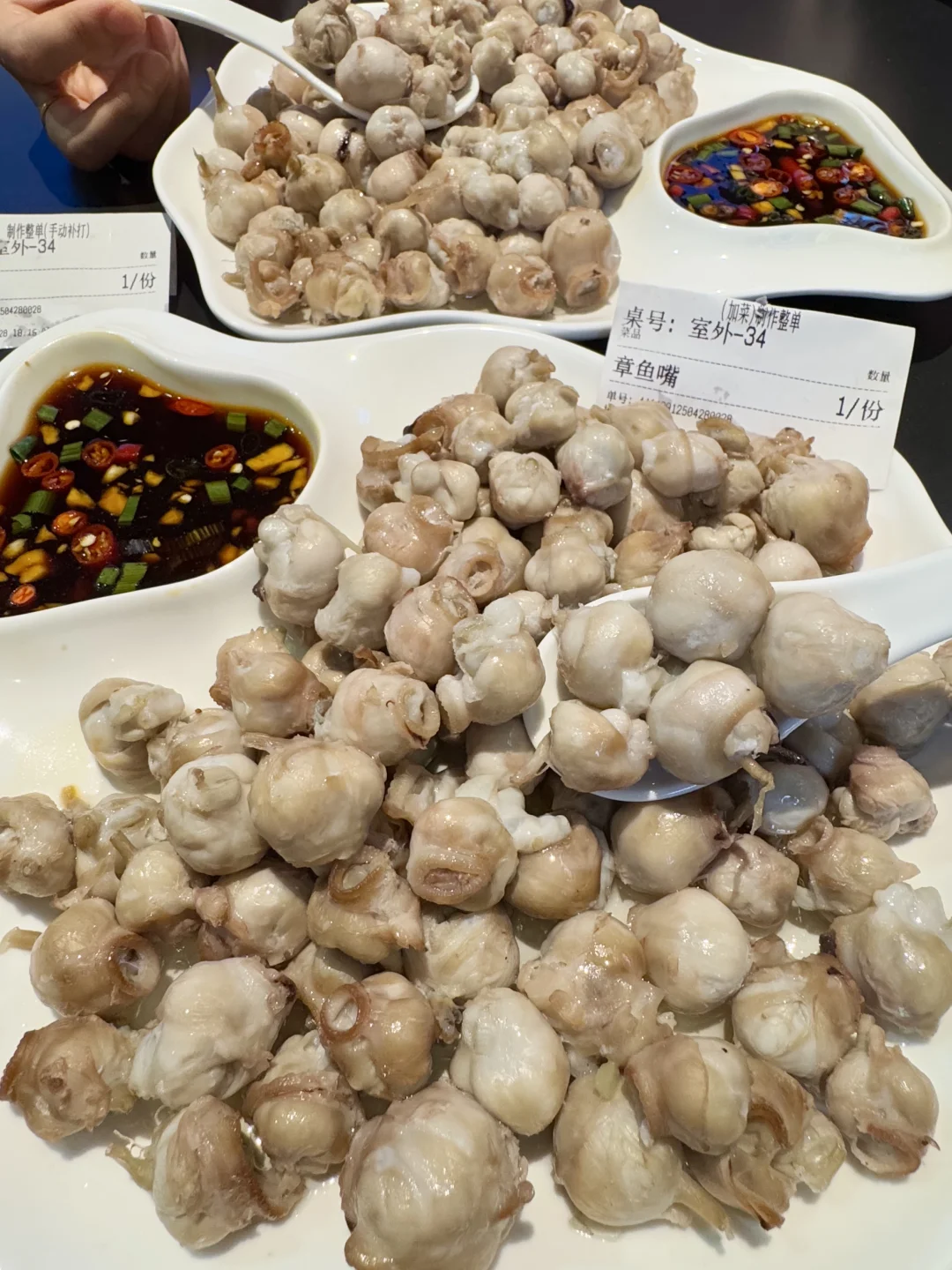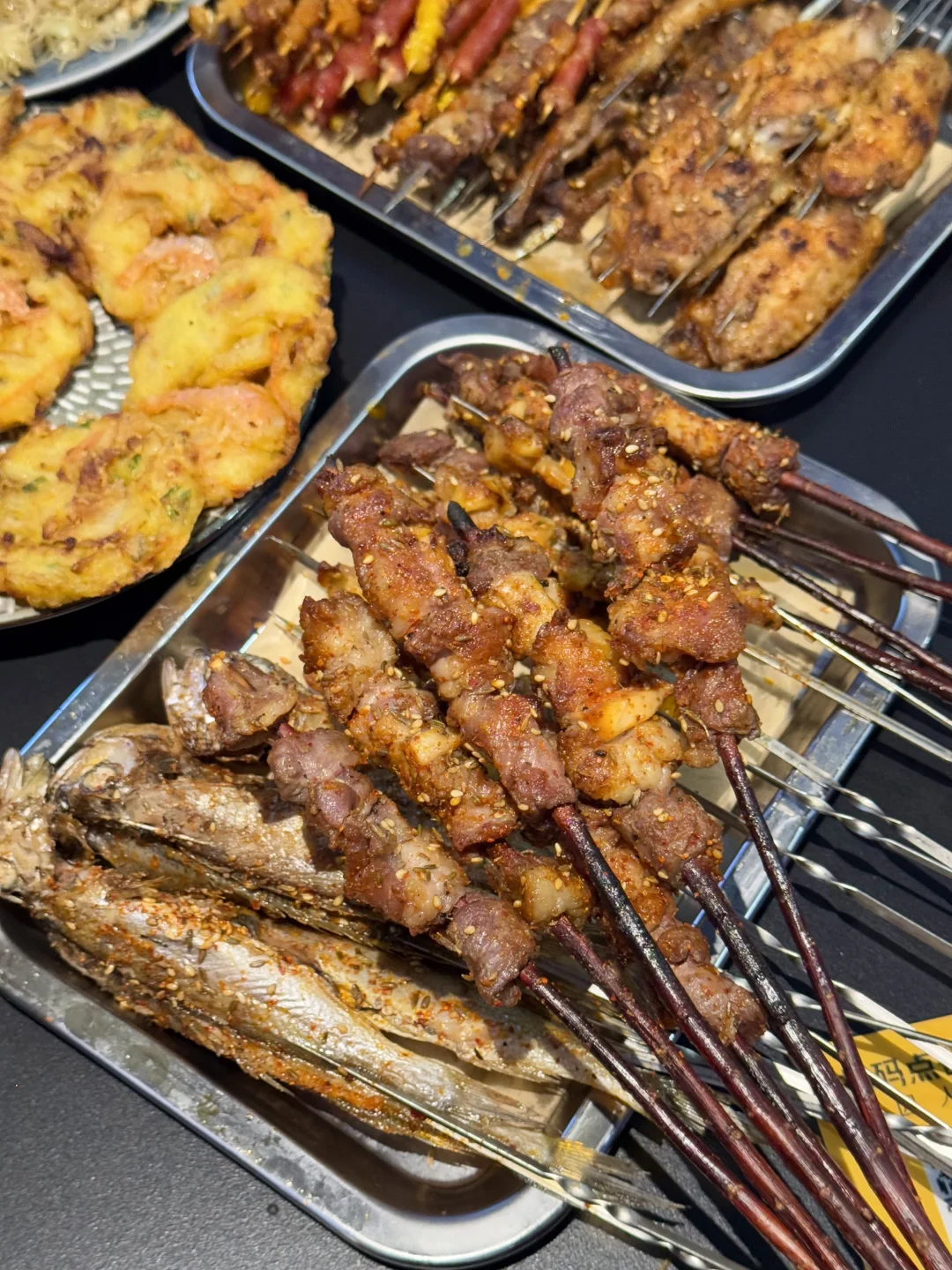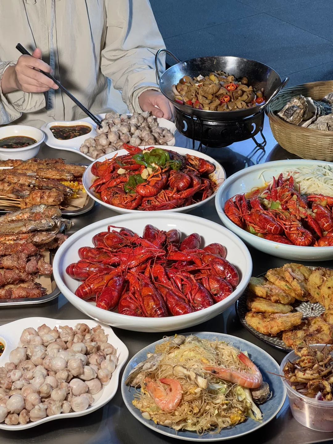 又到了吃小龙虾🦞的季节了!!激动的搓了搓小手🤤坠爱❤️的还是冰镇的!而且肉质紧实每只个头都好大🥹还有十三香的!记得加上一份泡面 小龙虾的汤汁拌面jue了!!!边拨边吃的快乐! 终于吃到章鱼嘴了!一口十个zei过瘾哈哈 还有牙签鱿鱼🦑一口下去香s!好辣好入味🌶️吃完还打包了一份! 红柳羊肉串、现烤小黄鱼、鸡脆骨…烧烤也是闭眼点都好吃😋