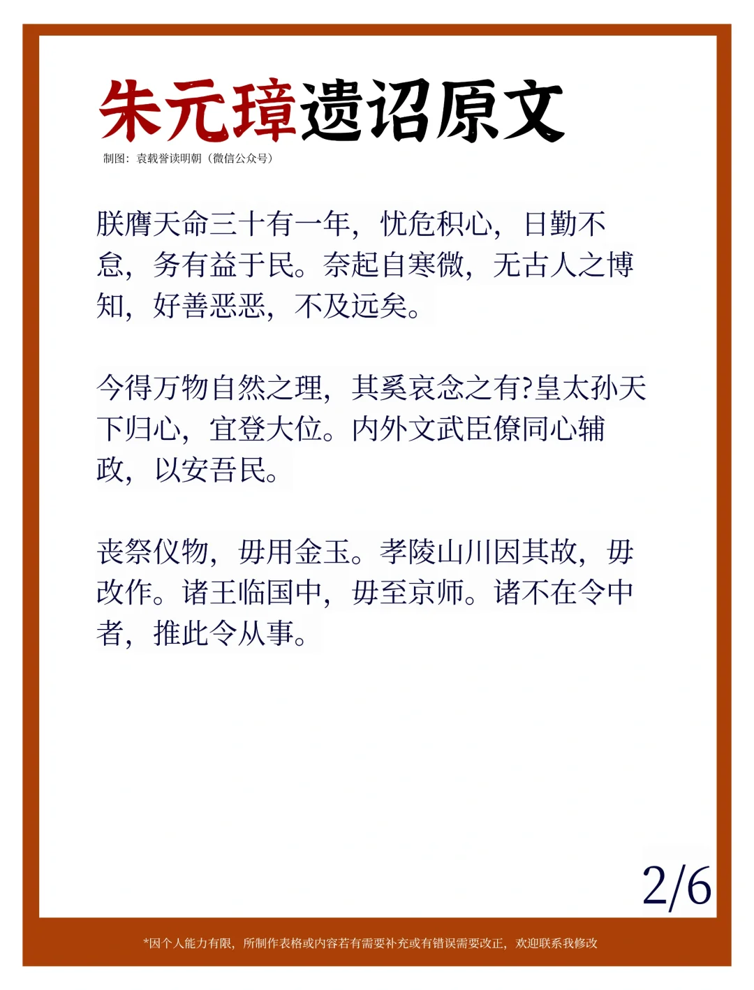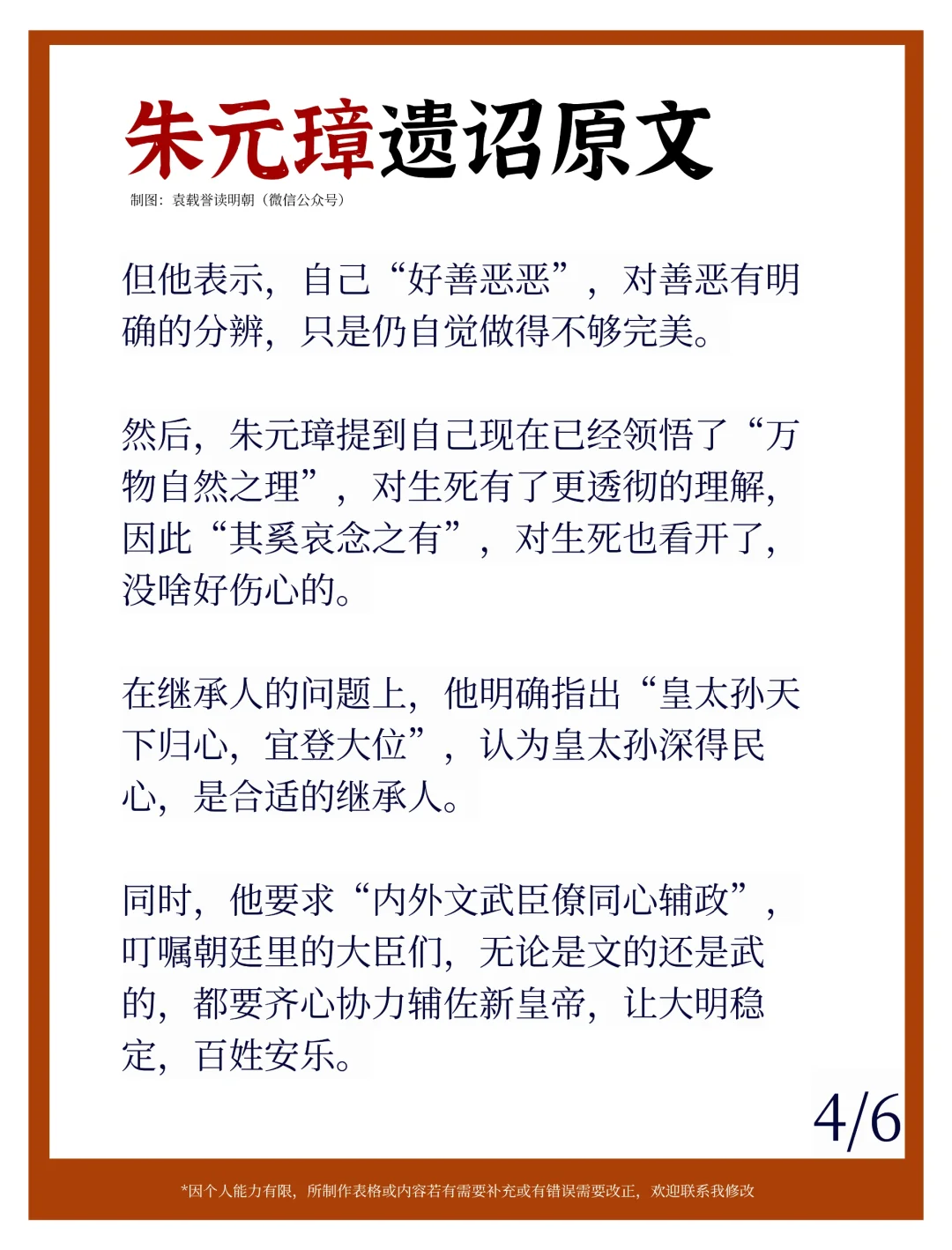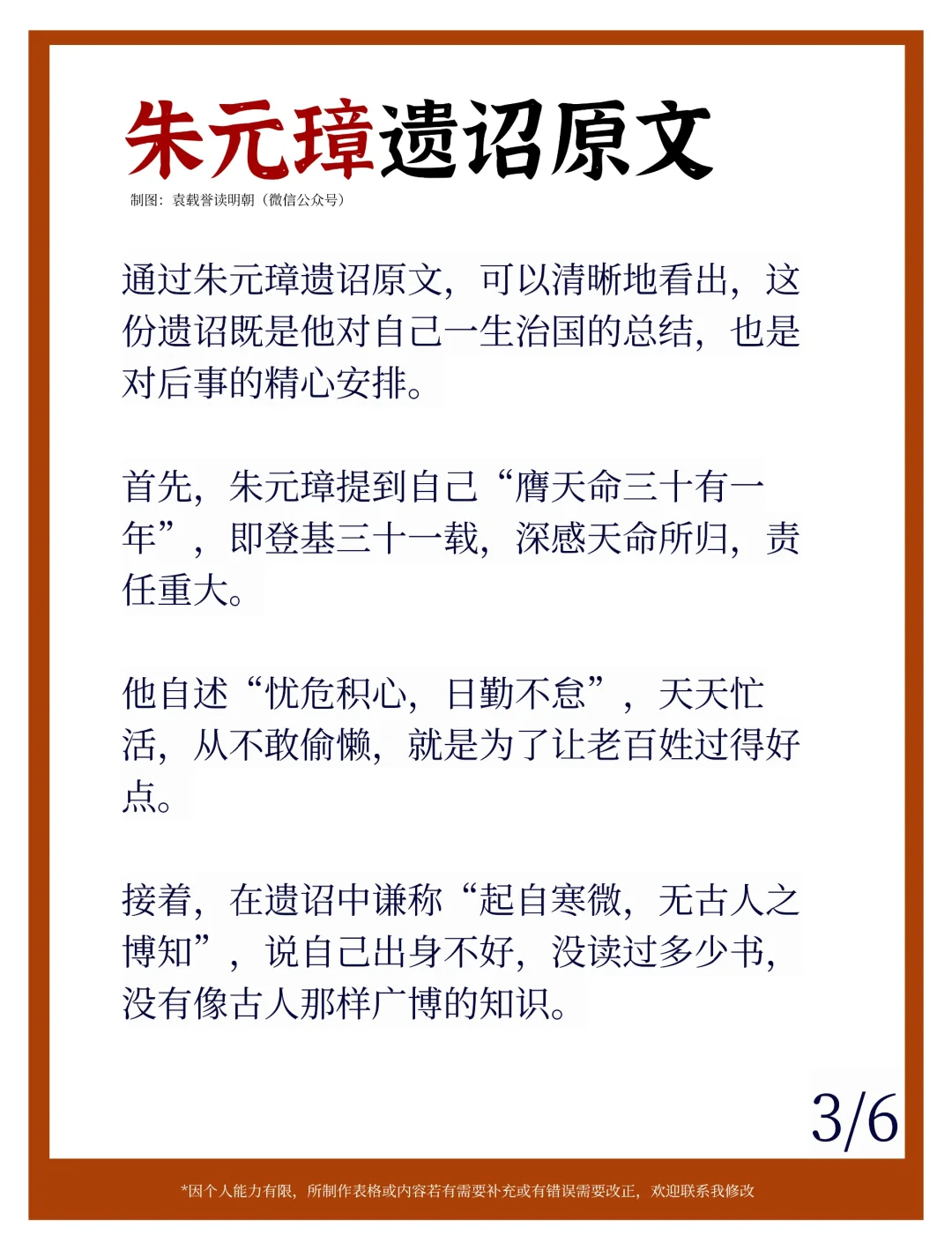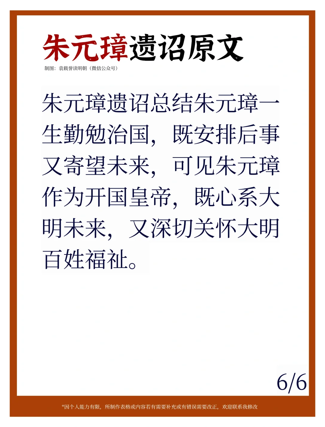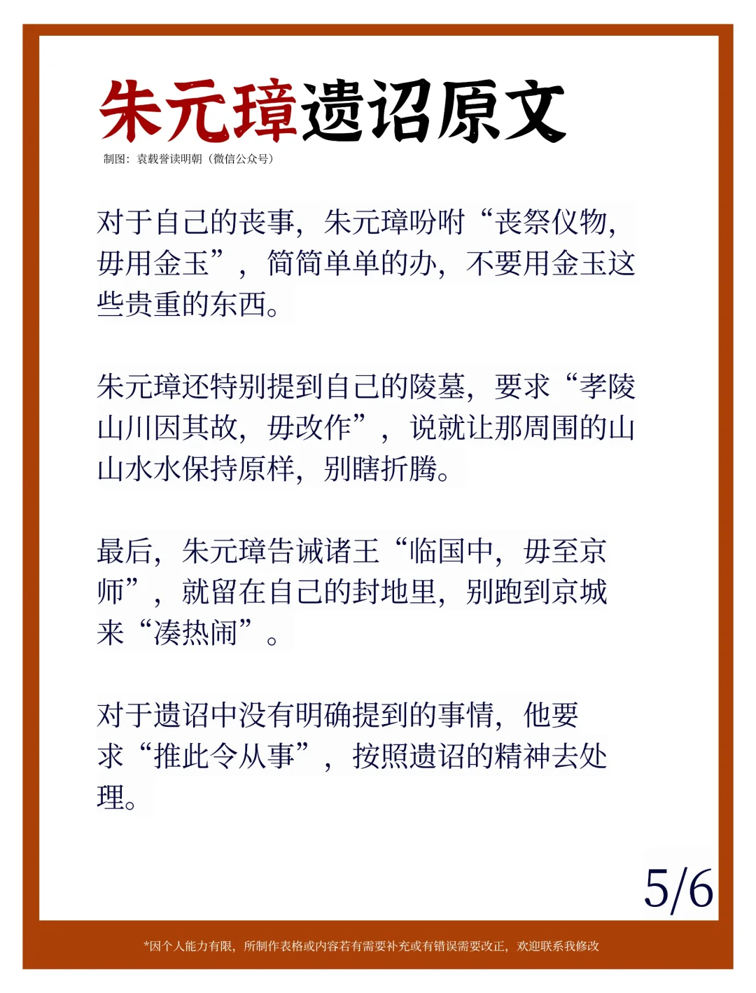 通过朱元璋遗诏原文,可以清晰地看出,这份遗诏既是他对自己一生治国的总结,也是对后事的精心安排。