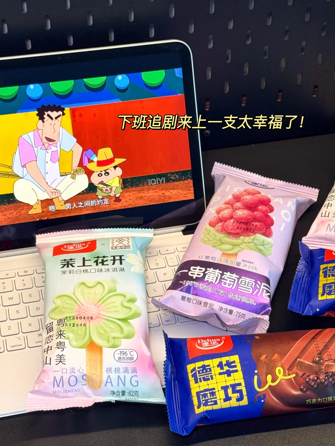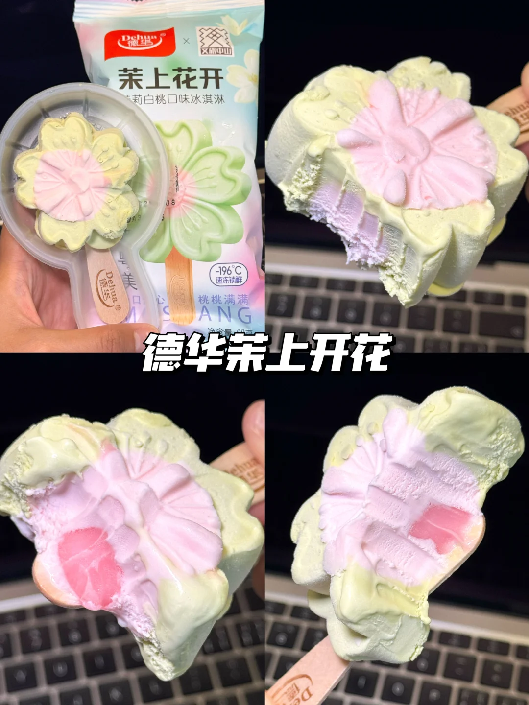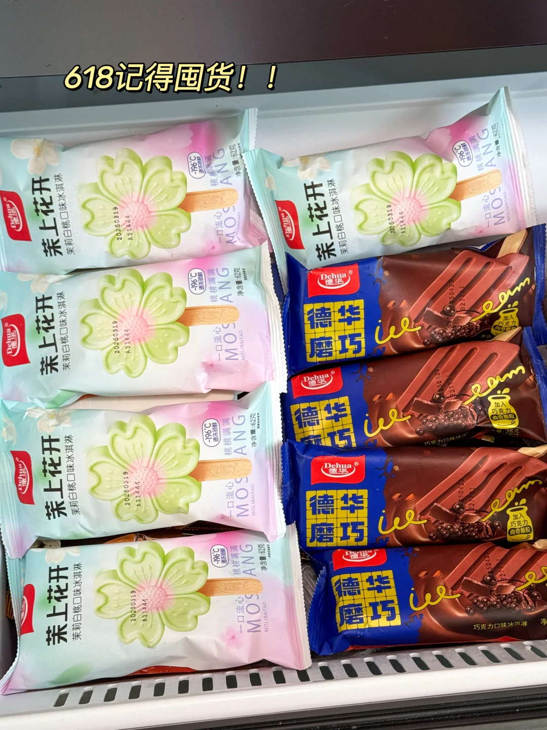 夏天的快乐是德华茉上开花冰淇淋给的!! 3D立体花花的造型 外面是沁人心脾的茉莉味 然后是甜滋滋的白桃🍑味 咬开里面还有白桃流心 花香果香交织 而且吃完嘴巴也是香香的 一支根本不过瘾~ 还有巧克力脑袋🍫冲磨巧!脆皮巧克力➕生巧➕满当当的巧克力豆 巧克力味敲浓郁~~ 一串葡萄也是超爱,浓浓的葡萄味 和生啃葡萄没有区别,果味超级浓郁 618记得狠狠囤!!!