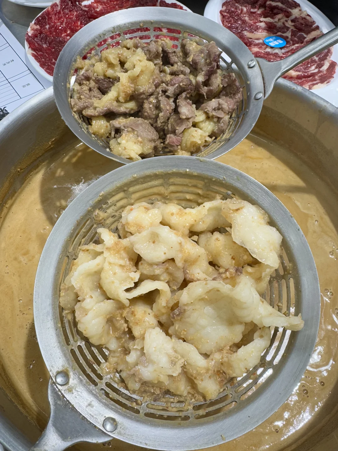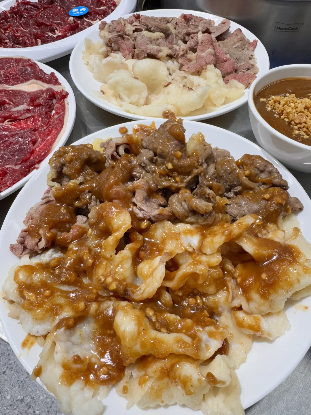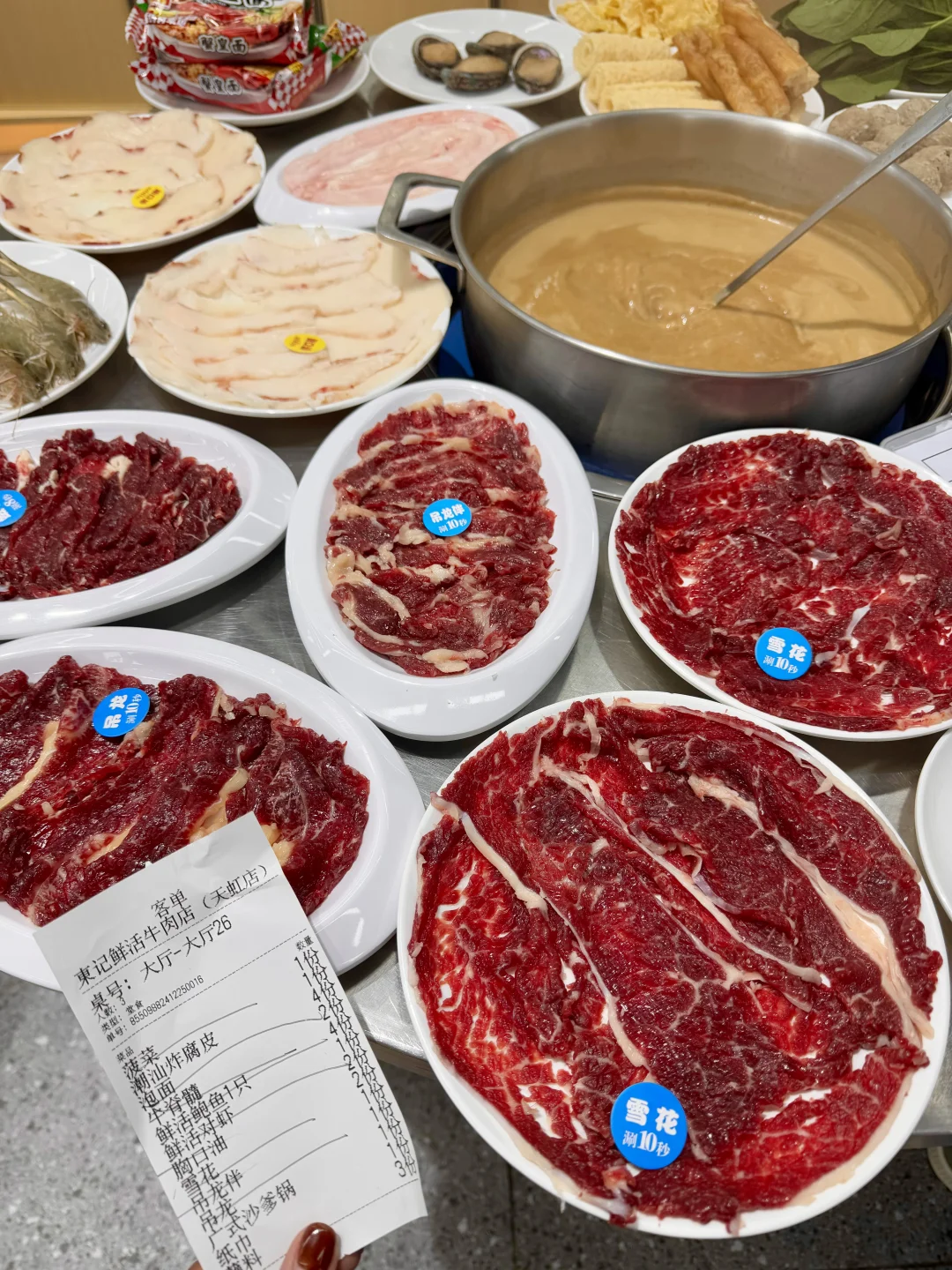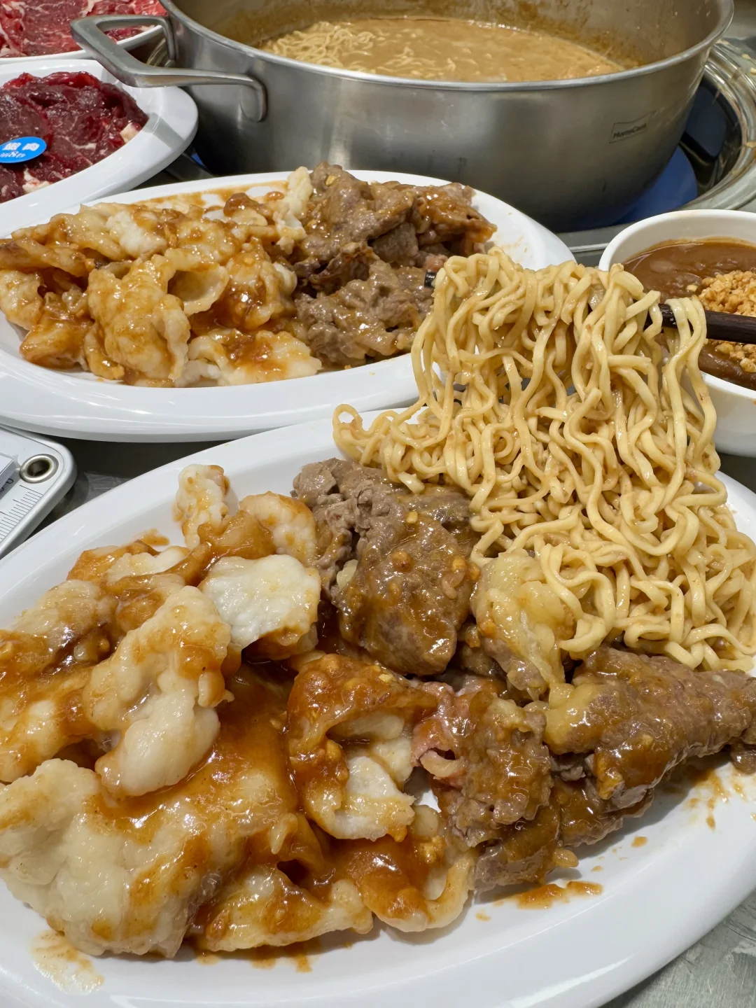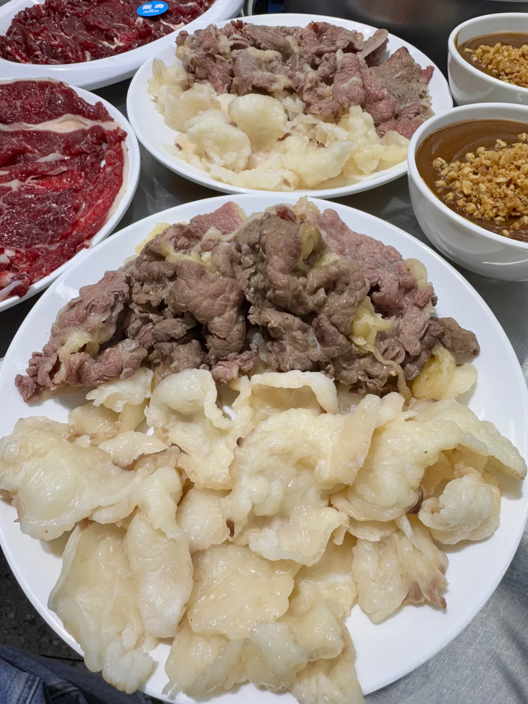 网友真的很会推荐!终于在杭州吃到了正宗的沙爹牛肉火锅啊!!汤底ju浓郁啊!涮啥都好吃😭 明档鲜切吊龙、爽脆胸口油…蘸沙茶酱+金蒜谁懂啊!!谁吃谁爱!再来上一份蟹皇面 每根面条上裹满沙爹酱好入味啊!搭配劲道的手打牛肉丸🥹我和小伙伴kuku一顿炫~不乱说真的一个人吃了好几盘… 新鲜的牛骨髓吸溜一下进嘴里QQ弹弹 快去次!!! 还吃到了苦瓜牛肉蟹皇面!原来苦瓜和牛肉🐂这么搭喜欢苦瓜的冲这个❤️