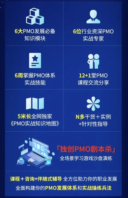 ✅不只是一次性课程,提供长久的伴随式助力成长服务,陪伴大家一路成长,成为中国最优秀的PMO和项目总监。