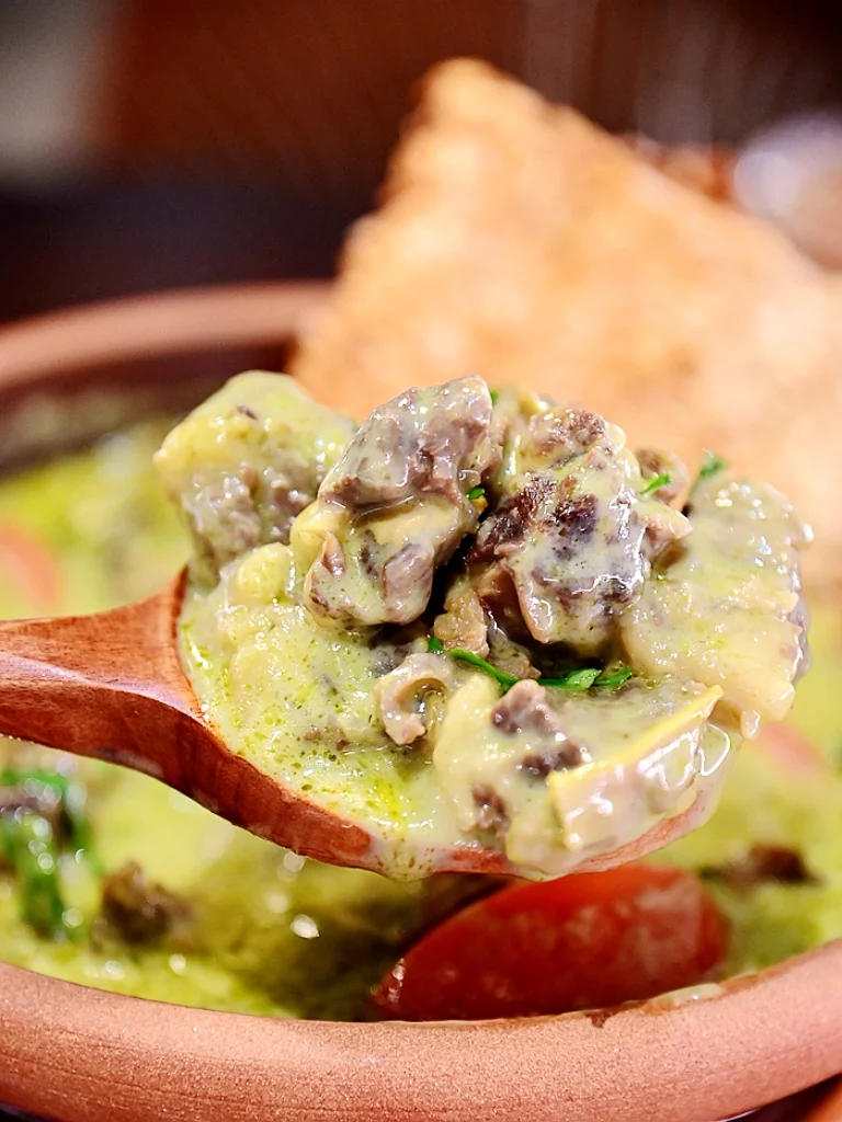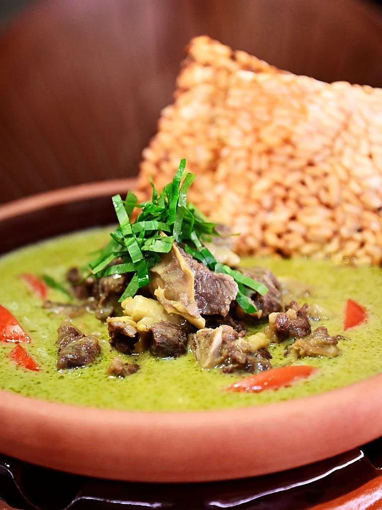 🐂青咖喱牛腩贵州炸米扁,大大一碗份量十足,青咖喱天然的色泽十分诱人,有好多大块的牛腩真材实料,牛腩筋道扎实香浓柔嫩,青咖喱浓郁醇厚一口入魂,炸米扁香香脆脆,色香味俱全。