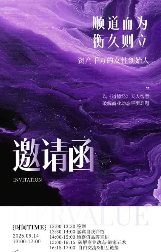 这个月14号,我会奢侈品牌同款场地包场组织一场女性创始人下午茶。特邀国学大师,用国学智慧拆解企业面临的经营难题。