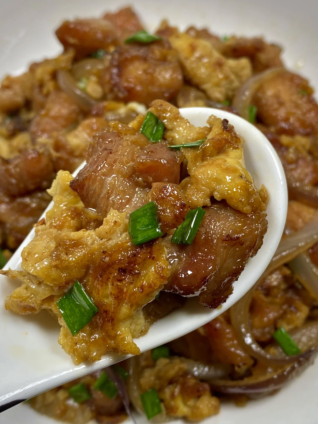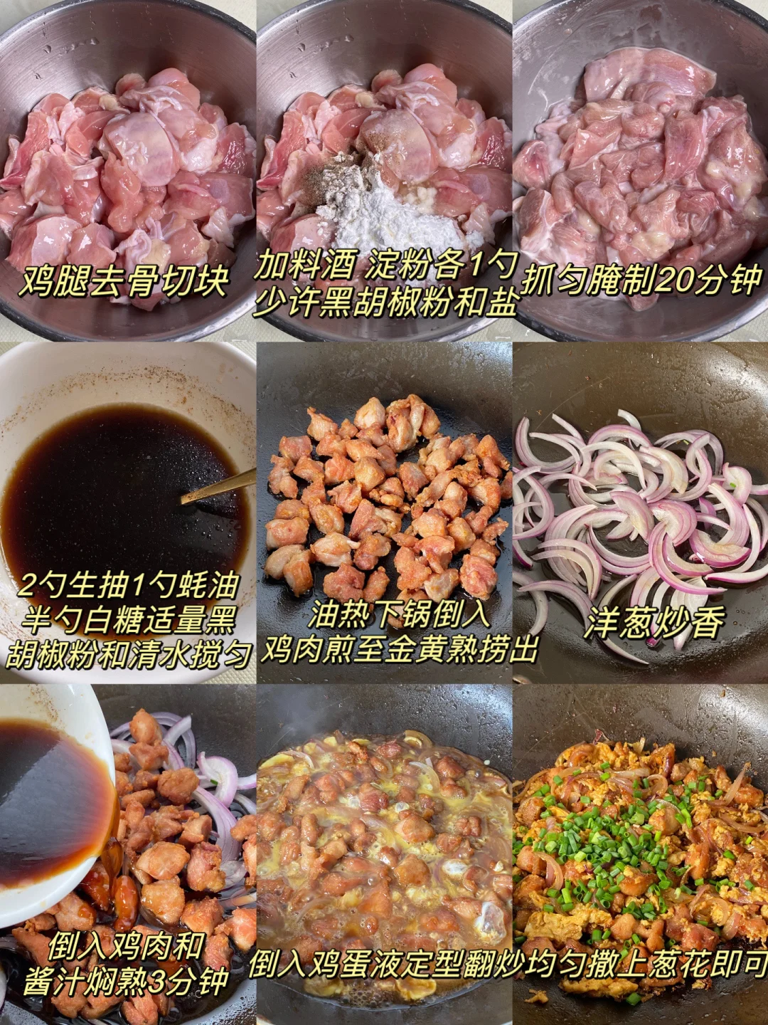 今天分享的是鸡腿葱花煎蛋出锅真的香迷糊了[色色R] 鸡腿肉外焦里嫩,鸡蛋鲜美嫩滑,再配上一碗米饭🍚绝了啊[赞R]嘎嘎的香,姐妹们快来试试吧!! 食材:鸡腿 鸡蛋 葱花 洋葱 做法简单,步骤看图集中👆