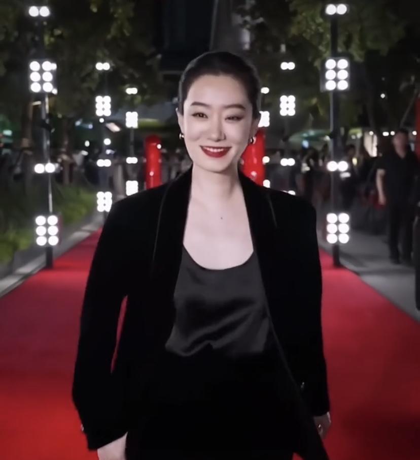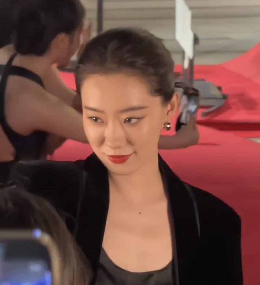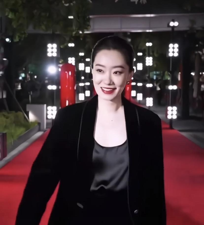 张小斐穿黑色套装参加活动,每次亮相都很惊艳。之前她身着定制深V黑色礼服走红毯,