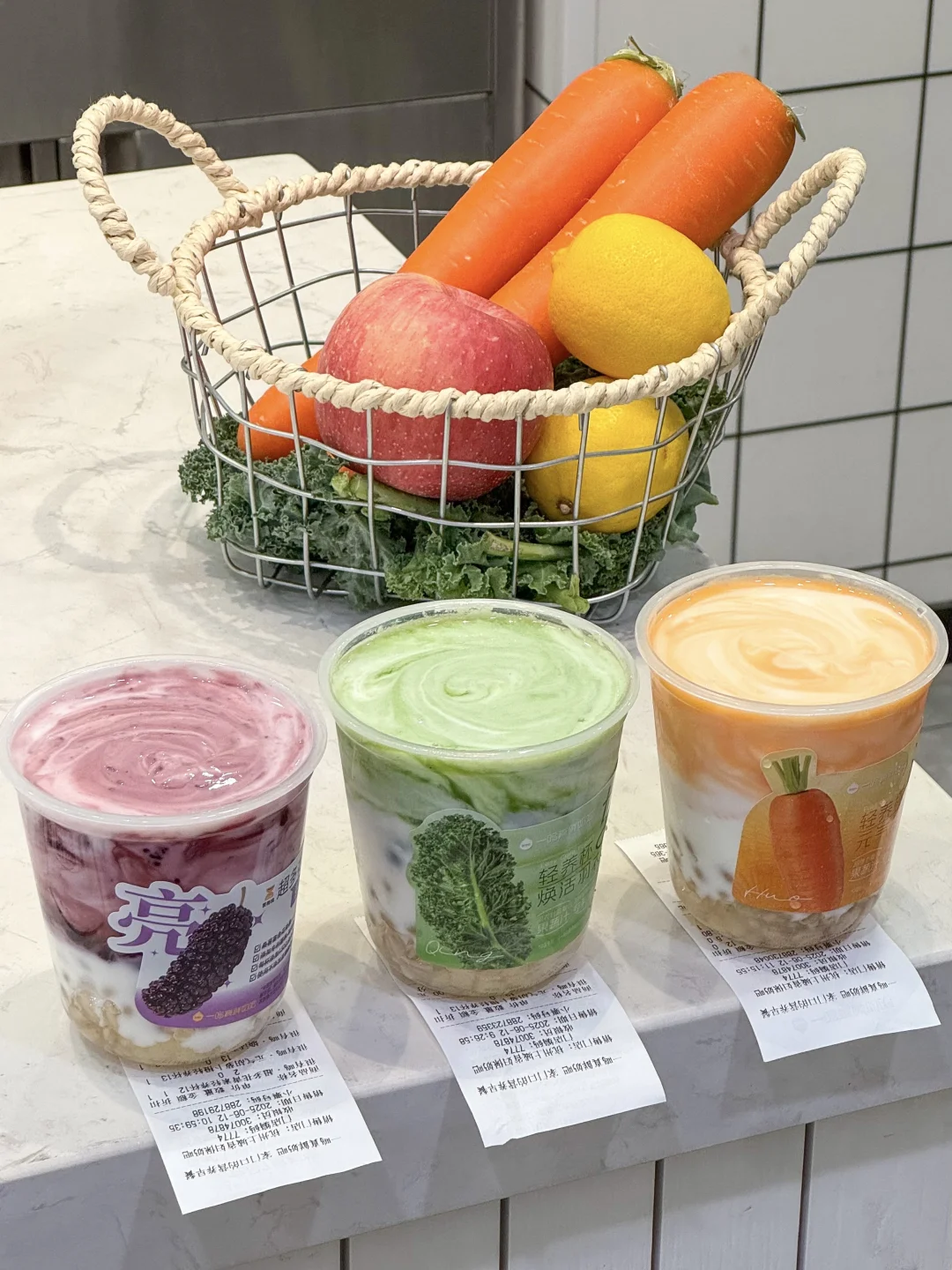 喝酸奶还得是一鸣!!敲火🔥的轻养杯出新口味了!!性价比高高的而且低卡好看好喝又健康!! ✔️元气胡萝卜橙轻养杯(275.2kcal) 新出的口味替你们喝过了!新西兰橙胡萝卜🥕、尤力克柠檬🍋、红富士苹果🍎酸奶里还有Q弹的爆爆珠 每一口都像在喝云朵慕斯 绵密顺滑 完全没有胡萝卜的怪味~喝完真的感觉元气满满啊! ✔️焕活羽衣甘蓝轻养杯(281.7kcal) 羽衣甘蓝➕红富士苹果🍎➕ 尤力克柠檬🍋➕山东西芹 就这搭配能不好喝!??加上好喝的酸奶和爆爆珠口感丰富吼吼喝!一杯下去饱腹感还蛮强的,本打工牛马真的一口焕活 ✔️超多花青素轻养杯(288.5kcal) 经典款不会出错!摁头推荐的!酸酸甜甜的桑葚果酱搭配益生菌酸奶 还有燕麦爆爆珠嚼嚼嚼 酸酸甜甜好喝不过瘾