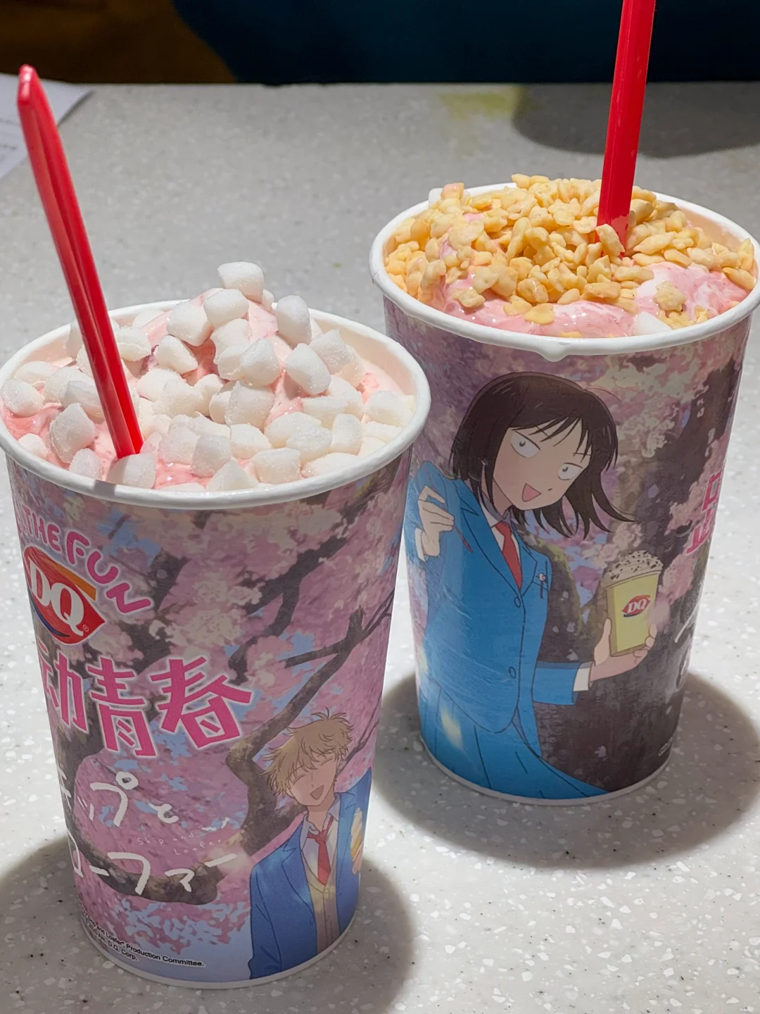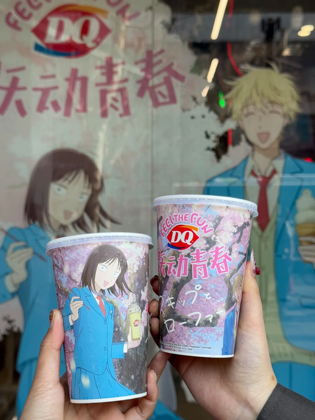 🥹又是钱包👛空空的一天 今天的幸福是DQ给的!吃上跃动青春的谷子!!3.1开始!!小美!志摩!!敲美的透卡!马口铁!还有亚克力相框🖼!!快来主题店拍照!!! 攻略看这里! ✔买联名暴风雪得透卡 ✔买联名暴风雪徽章套餐得透卡1个+徽章1个 ✔买联名暴风雪相框套餐得透卡1个+亚克力相框1个 新出的蜜桃乌龙暴风雪🍑两个口味都好吃😋 蜜桃乌龙冰淇淋🍦搭配糯叽叽的白玉麻薯和跳跳糖 甜滋滋的好喜欢 还有一款酸奶谷物粒🌾撒了跳跳糖尊嘟好奇妙!是春天的感觉~