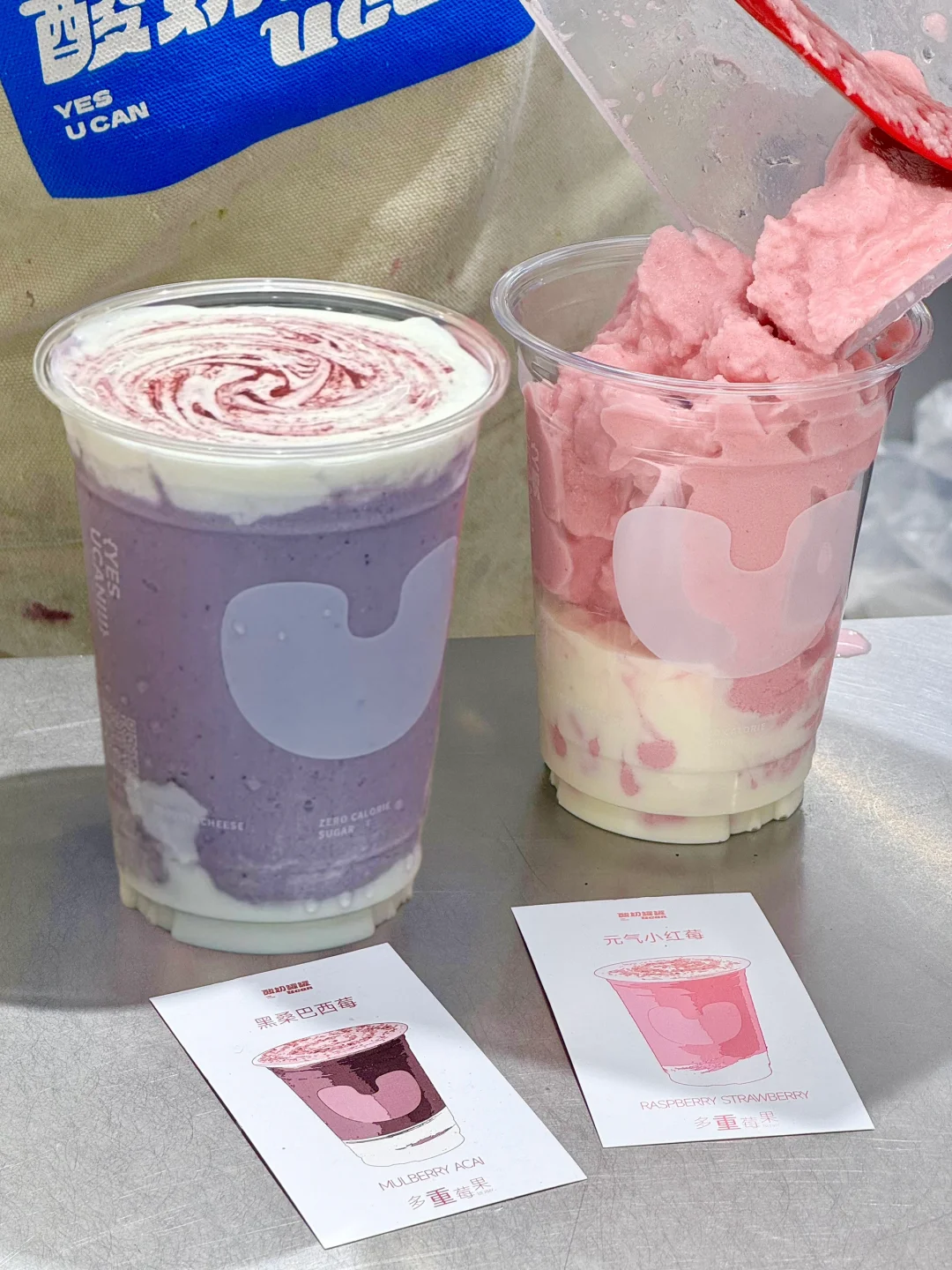 酸奶罐罐你会出新品你就多出点! 新出的三款酸奶昔好看又好喝啊!还有对应的刺绣贴也拿捏🤏我了! ✔花青马基莓酸奶昔 入口是浓郁的莓果香 搭配丝滑的仙人掌酸奶还有牛油果果粒嚼嚼嚼 让我惊喜的是里面马基莓里面高浓度花青素,还搭配了1亿活性乳酸菌酸奶,黄金牧场提供滴优质蛋白喝益生菌,不仅好喝还轻负担 ✔元气小红莓酸奶昔 草莓酸奶底每一口都能嚼到新鲜的树莓果粒 酸酸甜甜吼吼喝~低卡高纤维,这不妥妥的纤维瓶么,非常适合我们体重管理 ✔黑桑巴西莓酸奶昔 巴西莓风味的0蔗糖酸奶 点缀上桑葚粉 口感醇厚好像空口喝慕斯!而且而且!!这可是明星同款代餐哦