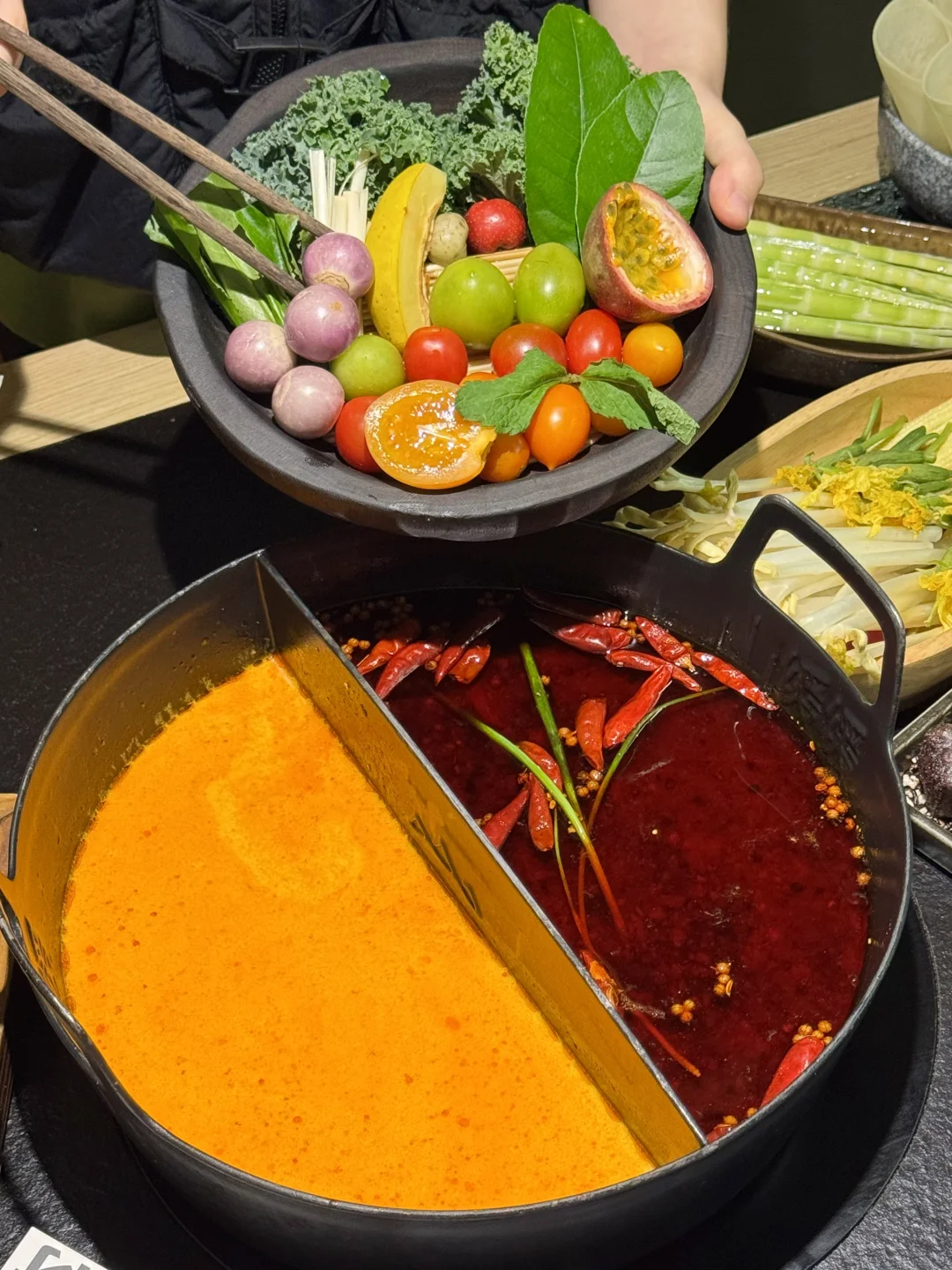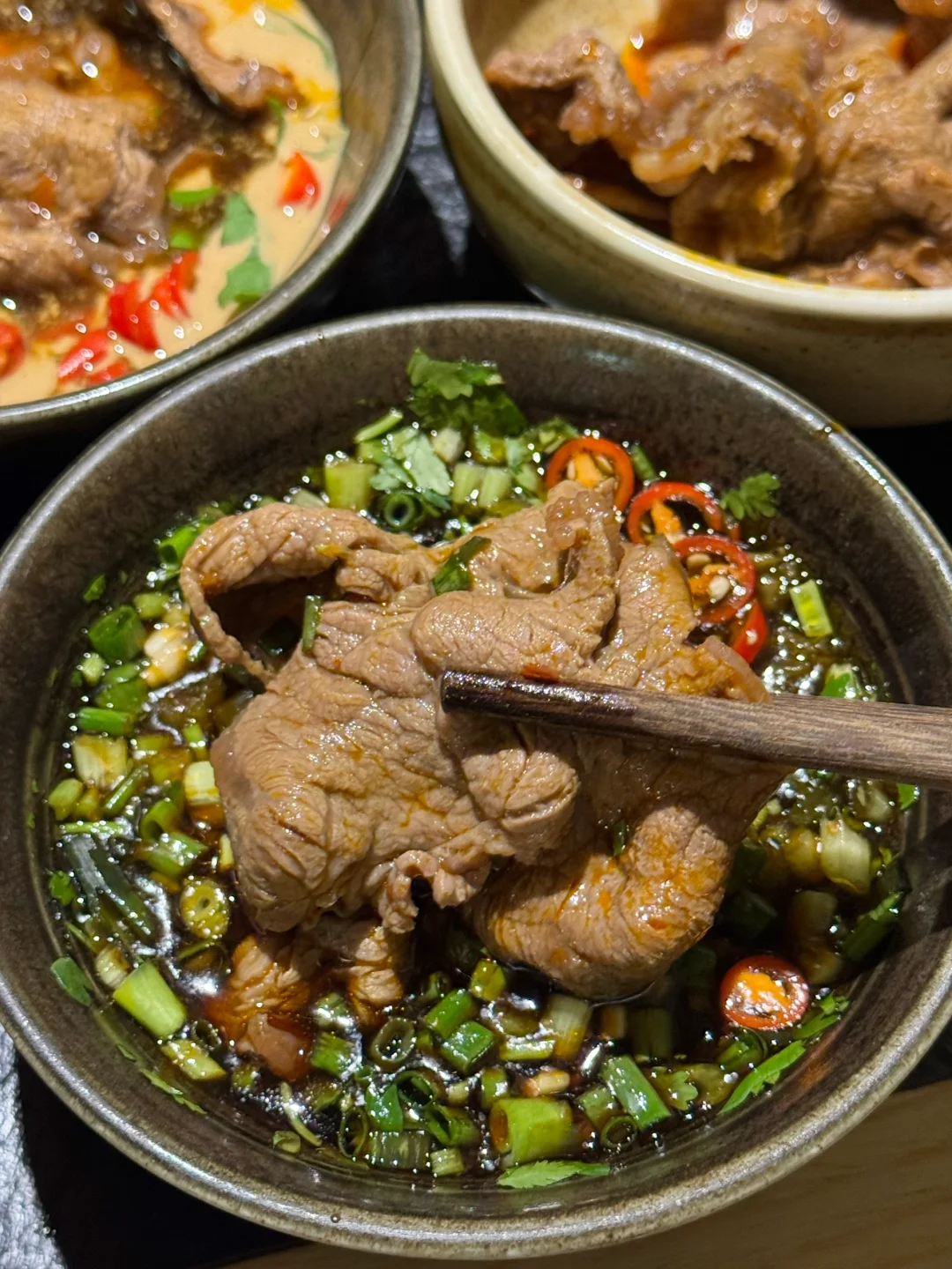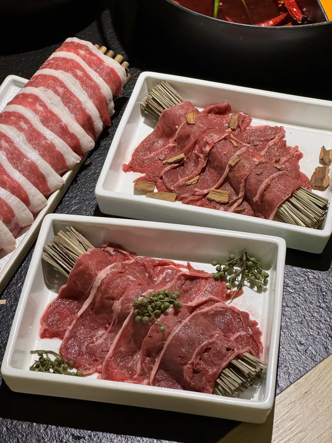 山缓缓可以算得上是杭州我坠爱❤️的火锅店!排队也要吃的!!😭😭 🆓的老白茶和新鲜荔枝!还有芭乐气泡水、苦瓜气泡水、胡萝卜百香果汁🥕他们家的小甜水也是好看又好喝!冰冰凉凉的芭乐酒酿冰粉好清爽和火锅好搭~边吃边约下次什么时候来了!! 我们点了野果酸汤锅底🍲酸酸辣辣的好开胃 新鲜现切的木姜子牛肉、花桂牛肉🐂放心点涮乐山红汤锅底里嘎嘎香! 还有外酥里糯的黑米糍粑、松软的麦青红豆糕(吃完又打包走了两盒🤤)现焖的芽菜脆哨牛肉饭🍚盲点都好吃不踩雷~