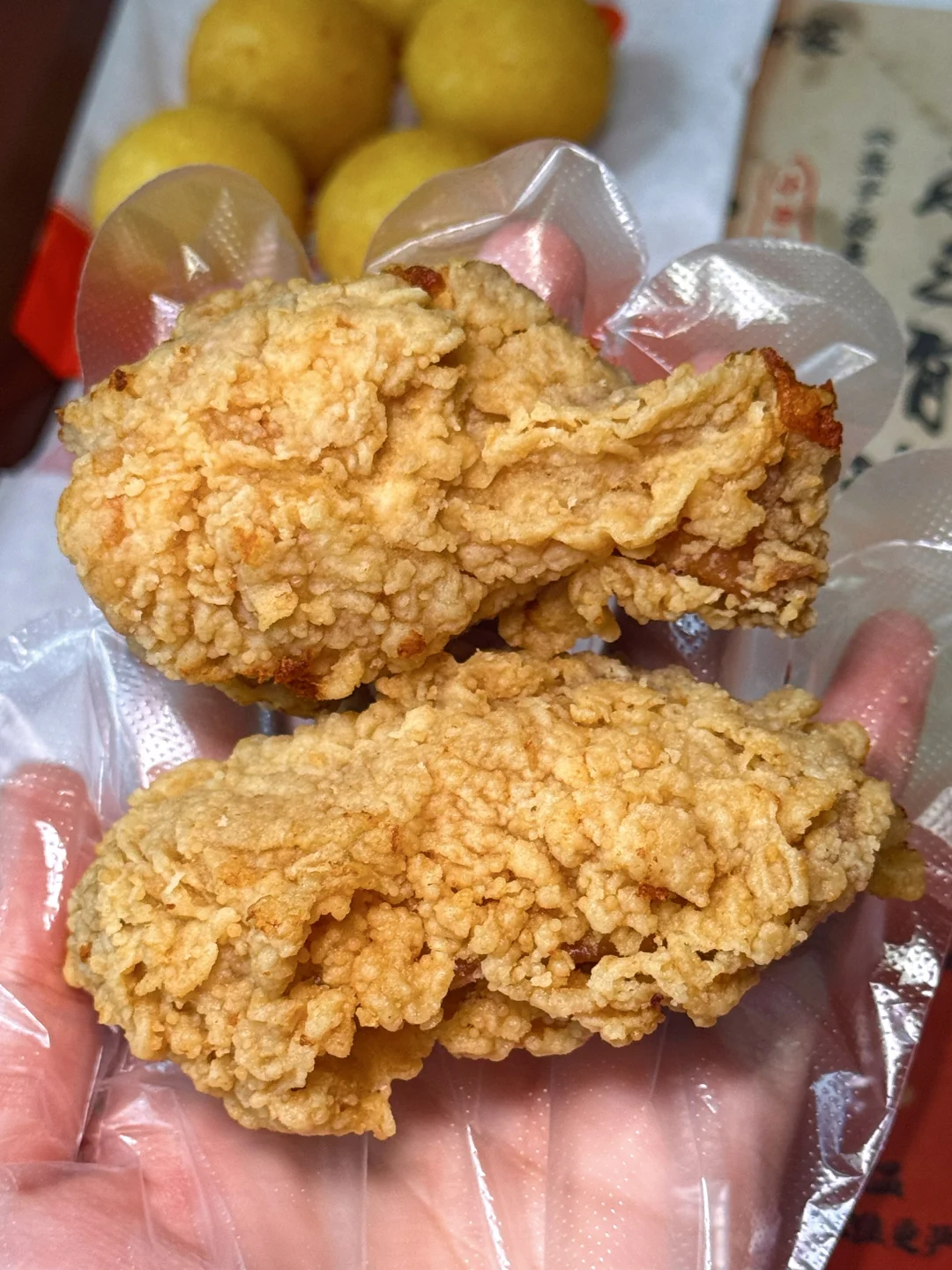 ✔嫩炸五香鸡腿肉串 现点现炸的大块鸡腿肉🍗很嫩不柴 五香味一口爆汁🤤
