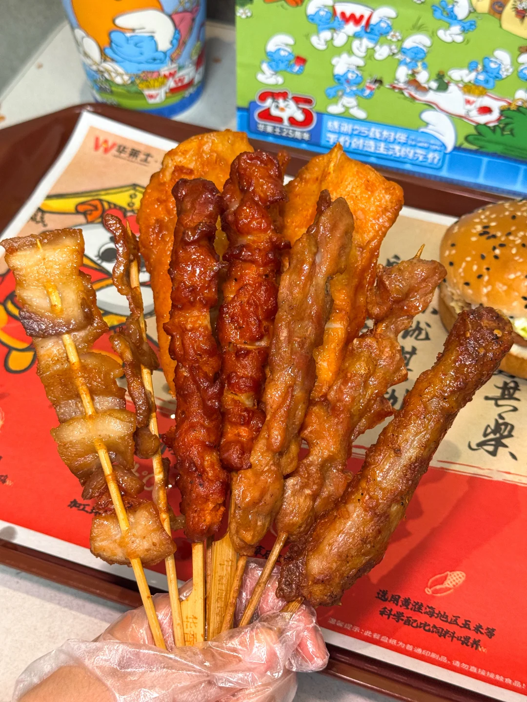 还有新出的撸串自由桶,8串肉肉才不到20!!性价比拉满啊!华莱士你还是这么宠我们!一次可以吃到好几种风味,夏天放肆撸串尊嘟好幸福!