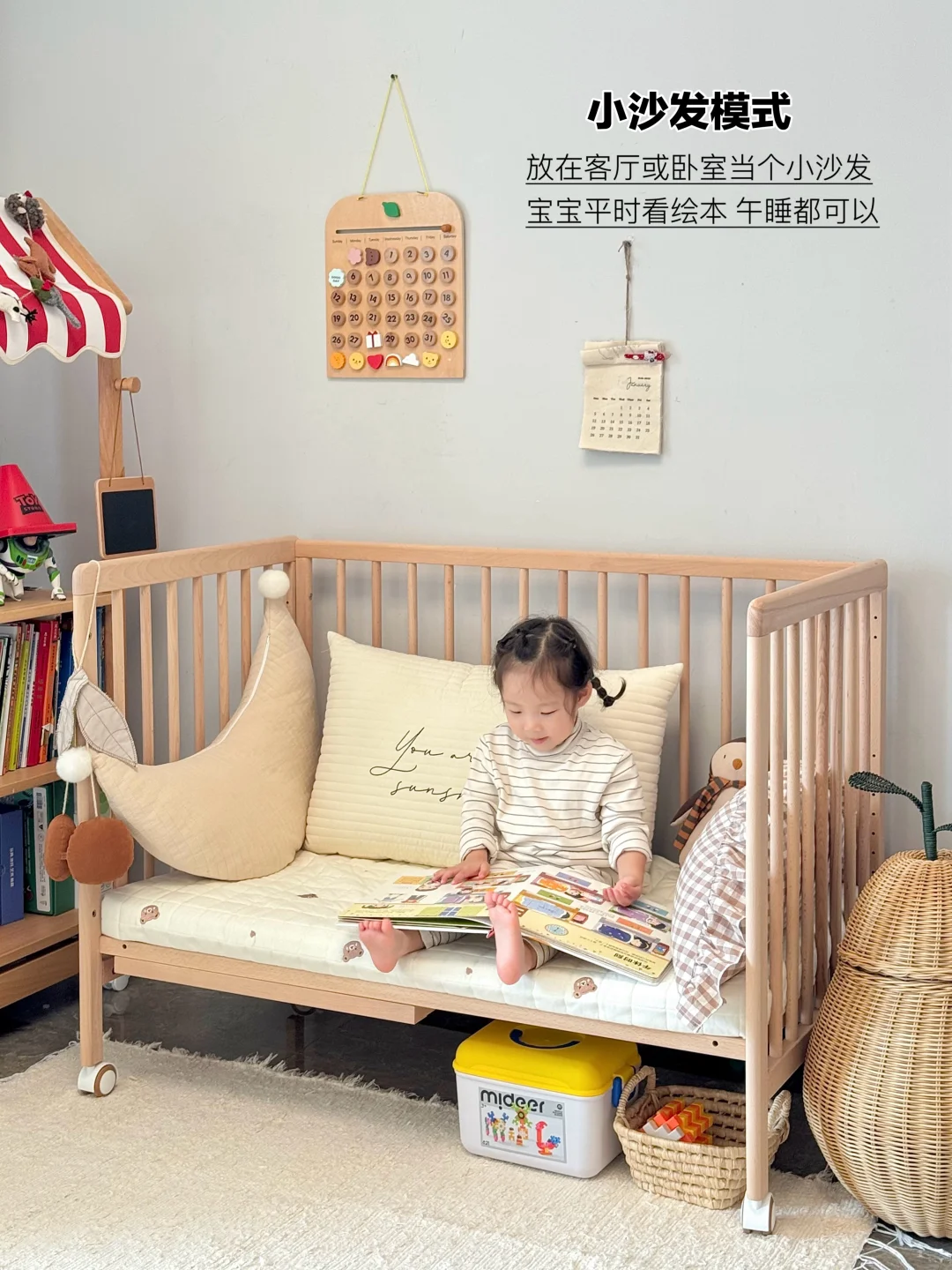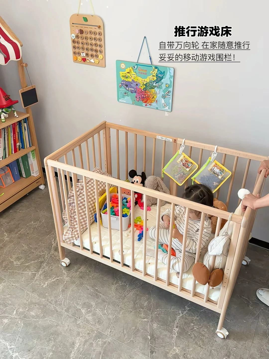 自带万向轮,床板降到最低档,就是妥妥的可移动游戏围栏!🧸