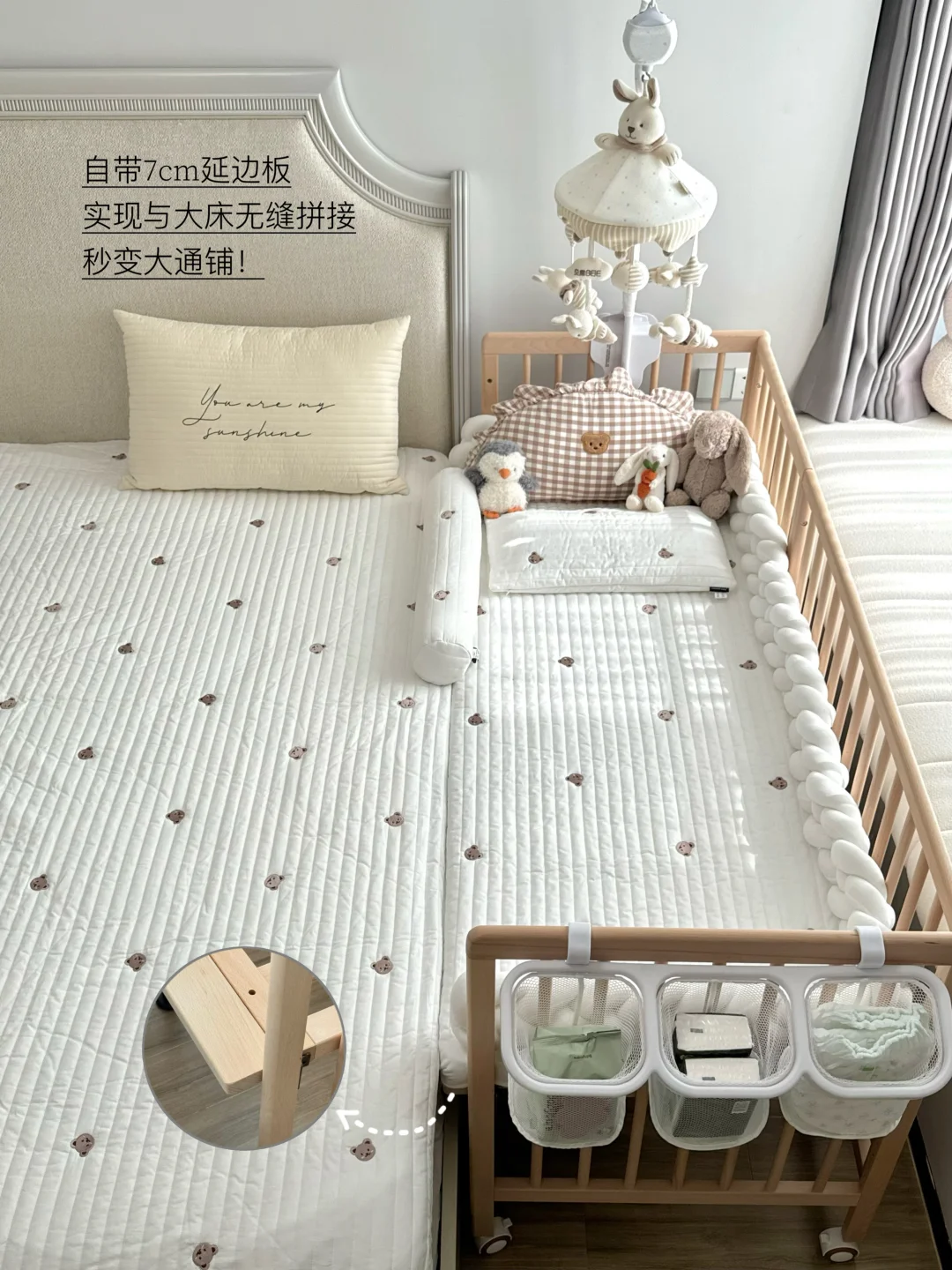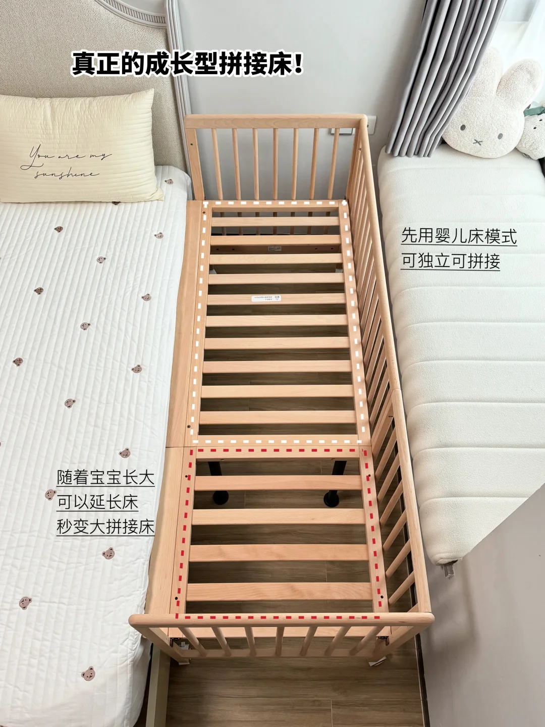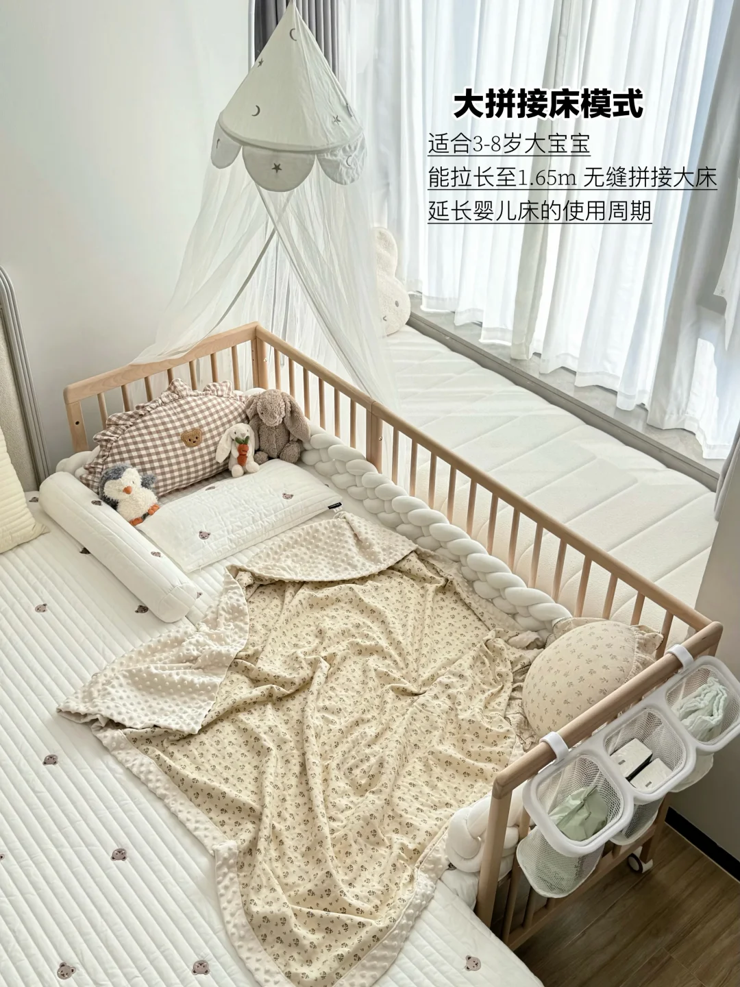 小月龄时拆掉一侧围栏,无缝拼接大床