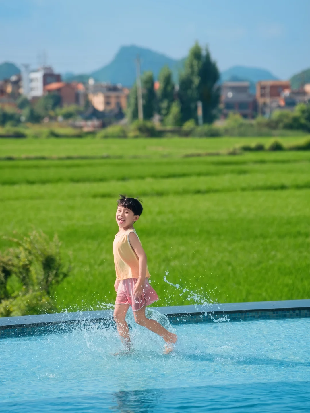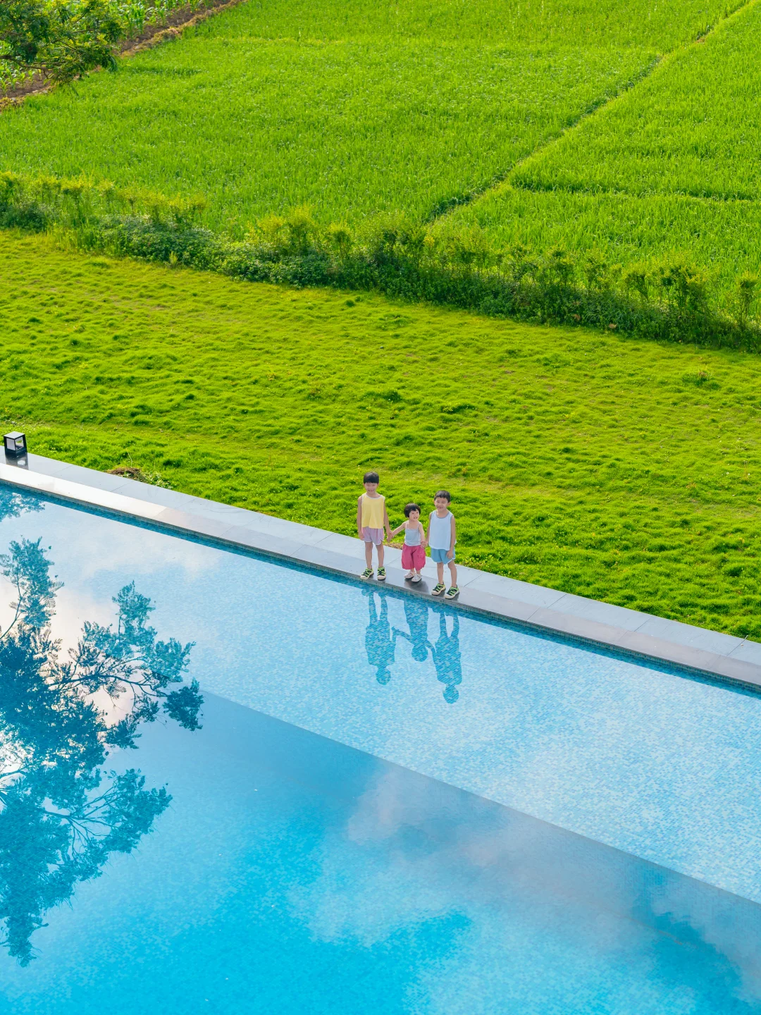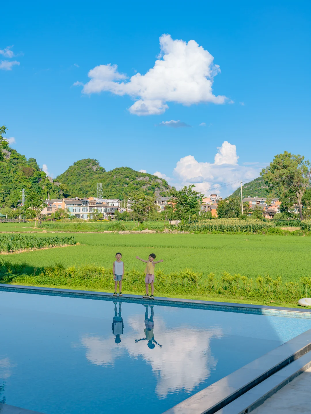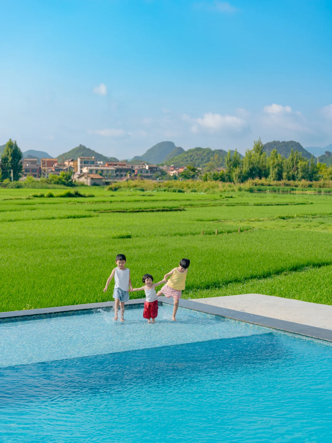 💦院子里的泳池更是神兽的快乐老家!孩子们在水里扑腾、玩水枪,笑声就没停过。大人瘫在泳池边的躺椅上,吃着民宿的下午茶,看着眼前治愈的绿野…