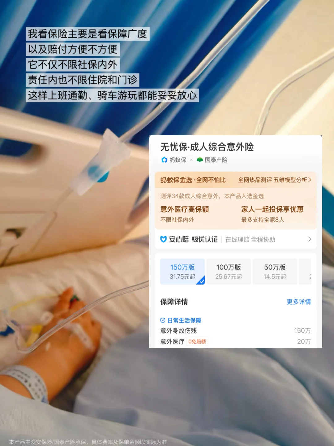在支付宝搜【无忧保】即可购买,简单方便!毕竟成年人的顶级自律,就是把意外锁紧“保险箱”里,给未来那个“可能跌倒的自己”,提前伸一把援手。