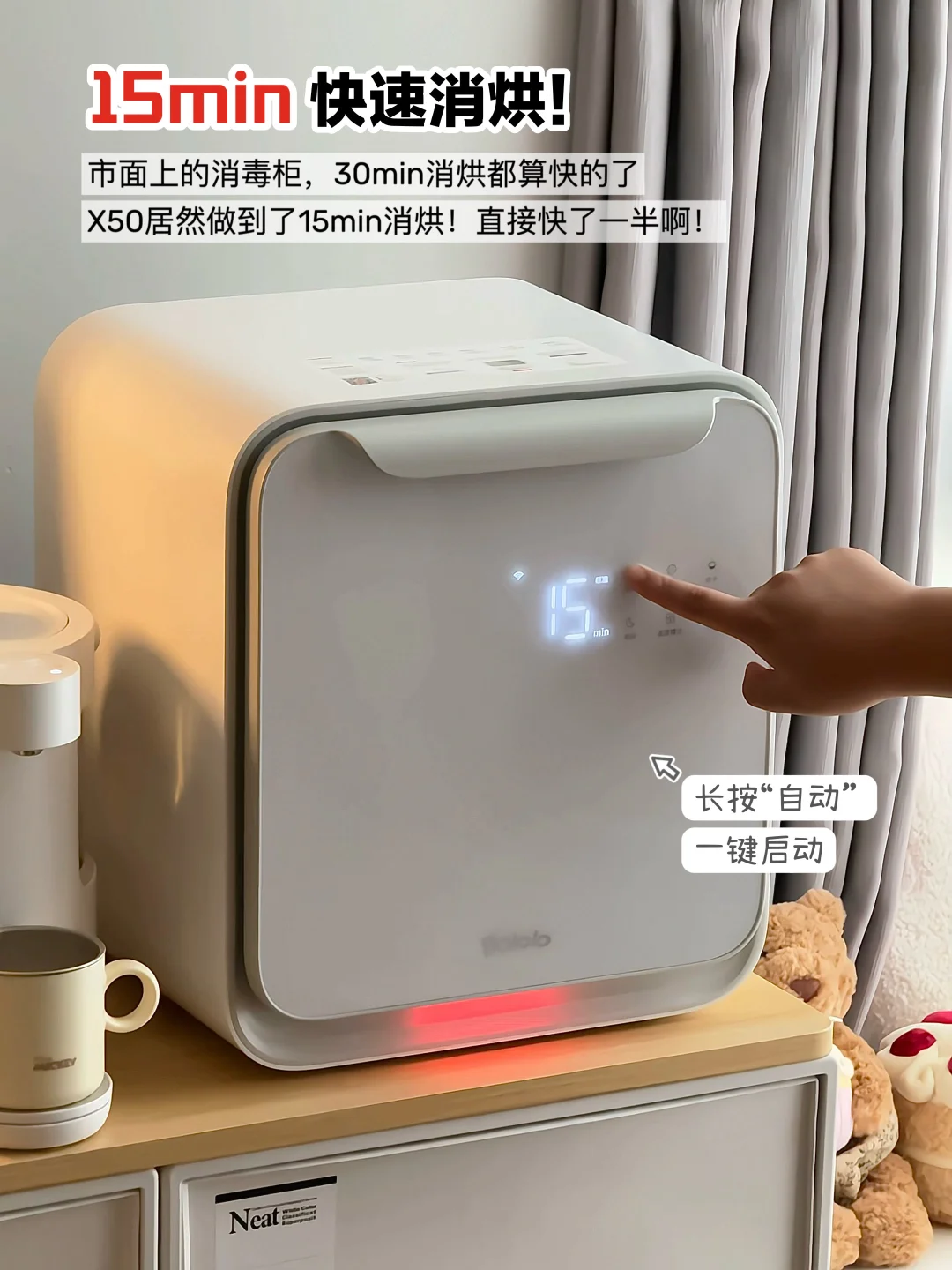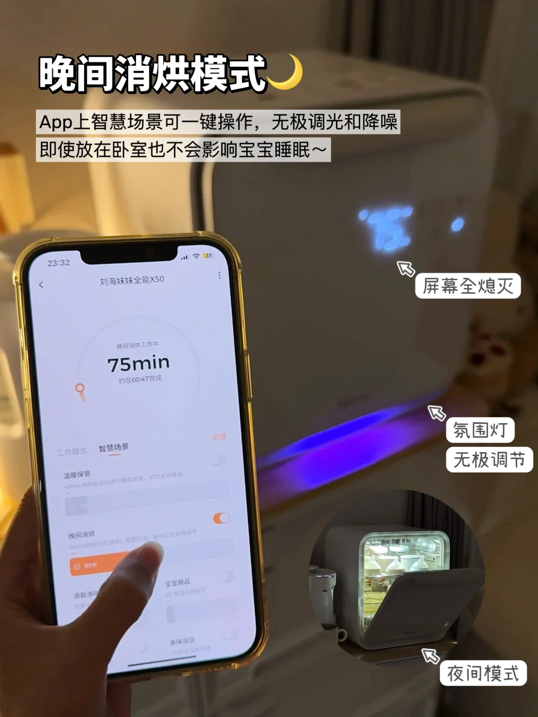 我新换的bololo x50消毒柜,有快速模式15分钟就消烘好了,放卧室没啥声不影响睡觉,还能连手机操控,嘎嘎好用了!!