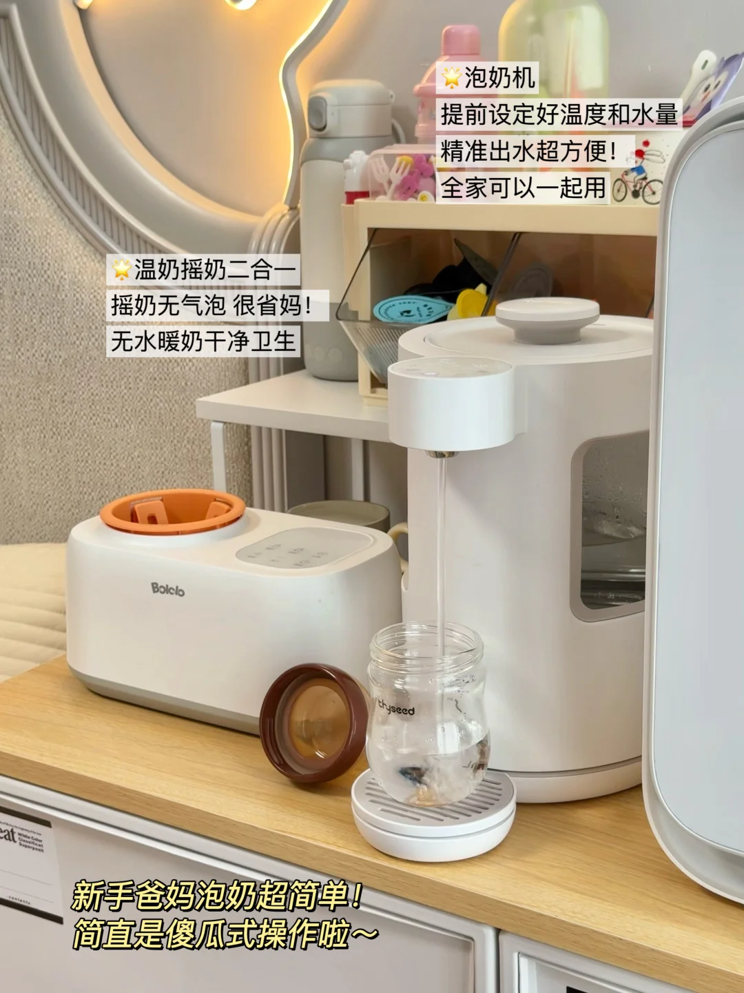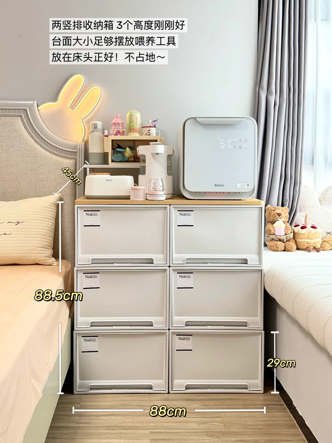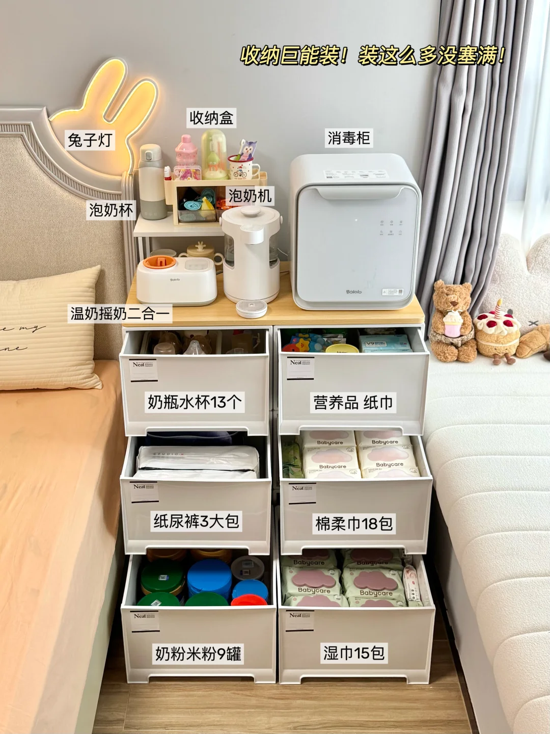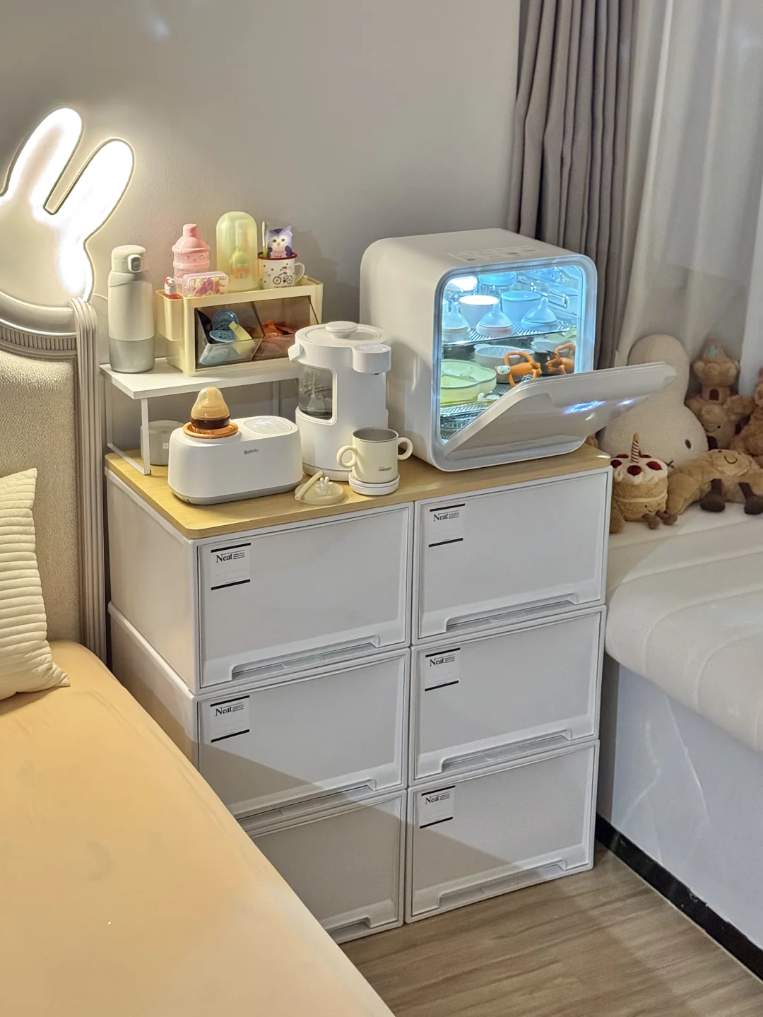 桌板台面大小正好放下消毒柜泡奶机啥的,直接爆改宝宝喂养台了
