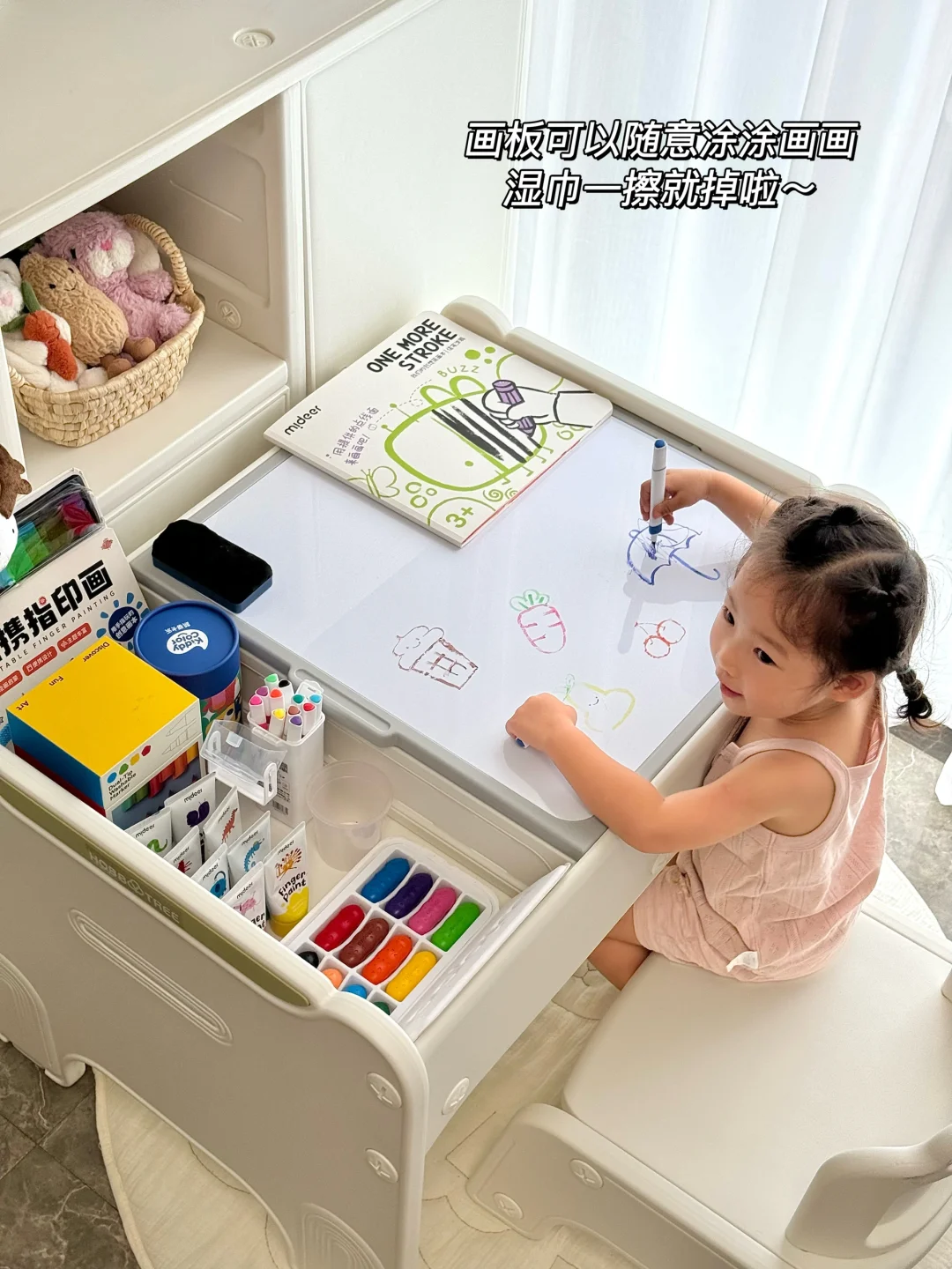 桌板反过来就是个画板,涂涂画画,小白板擦一擦就干净,巨省妈!