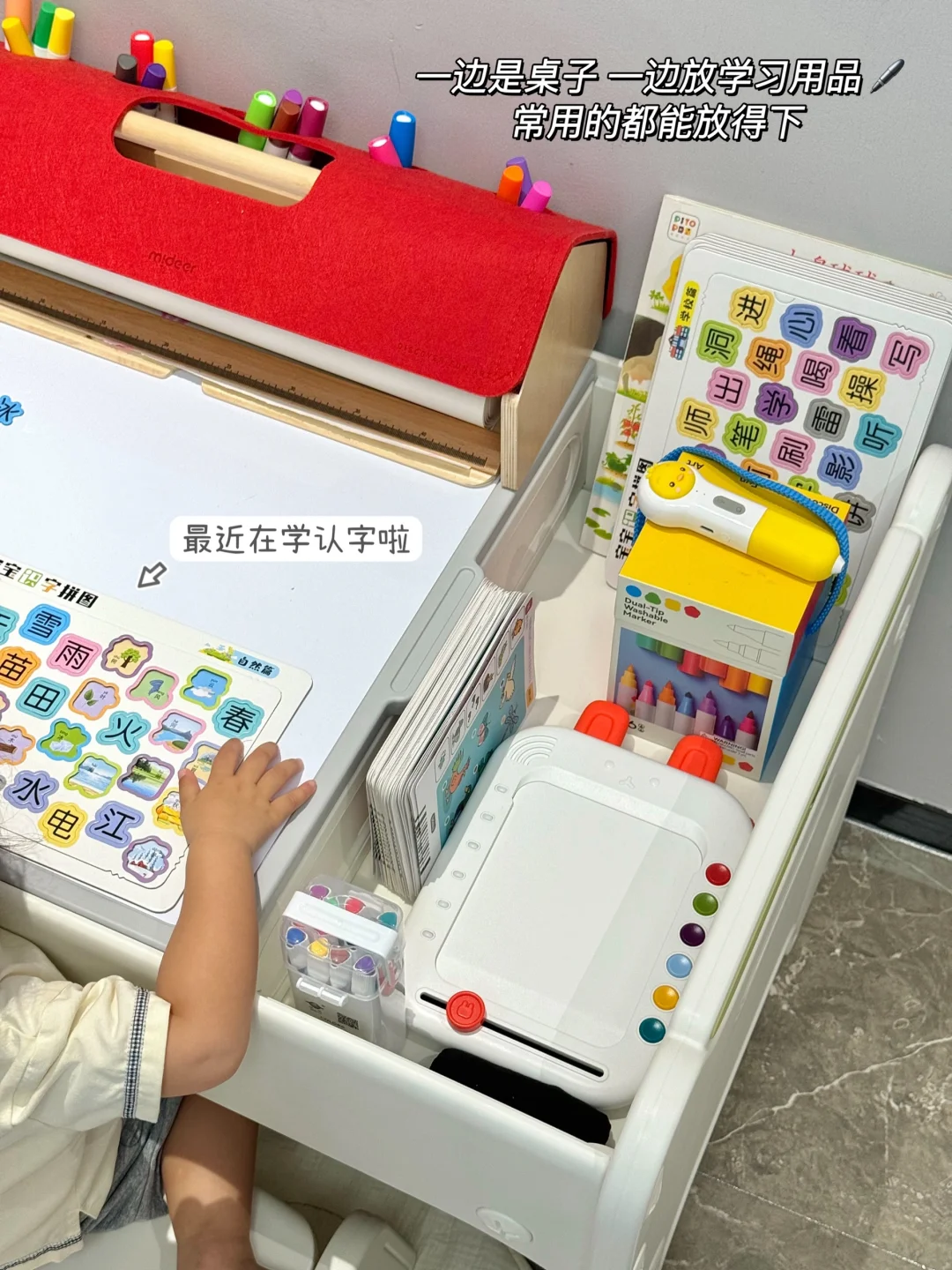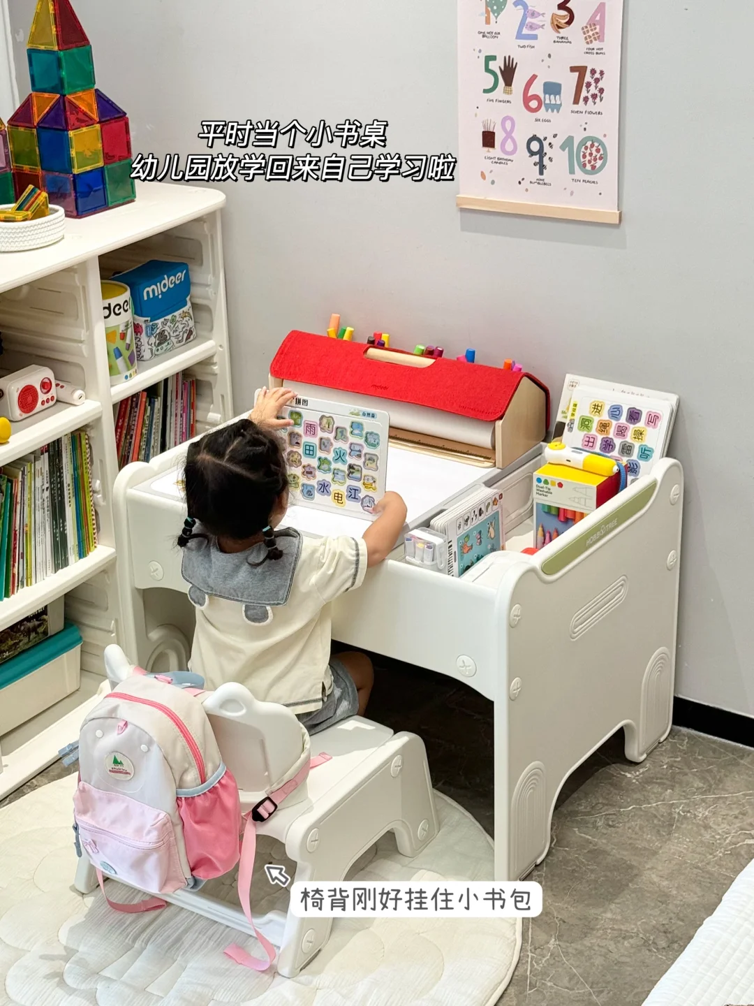 日常就当个小学习桌啦~旁边还能收纳学习用品,幼儿园小朋友都需要,这个高度用到上小学没问题~