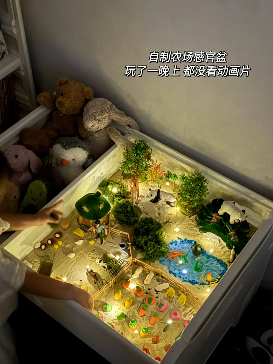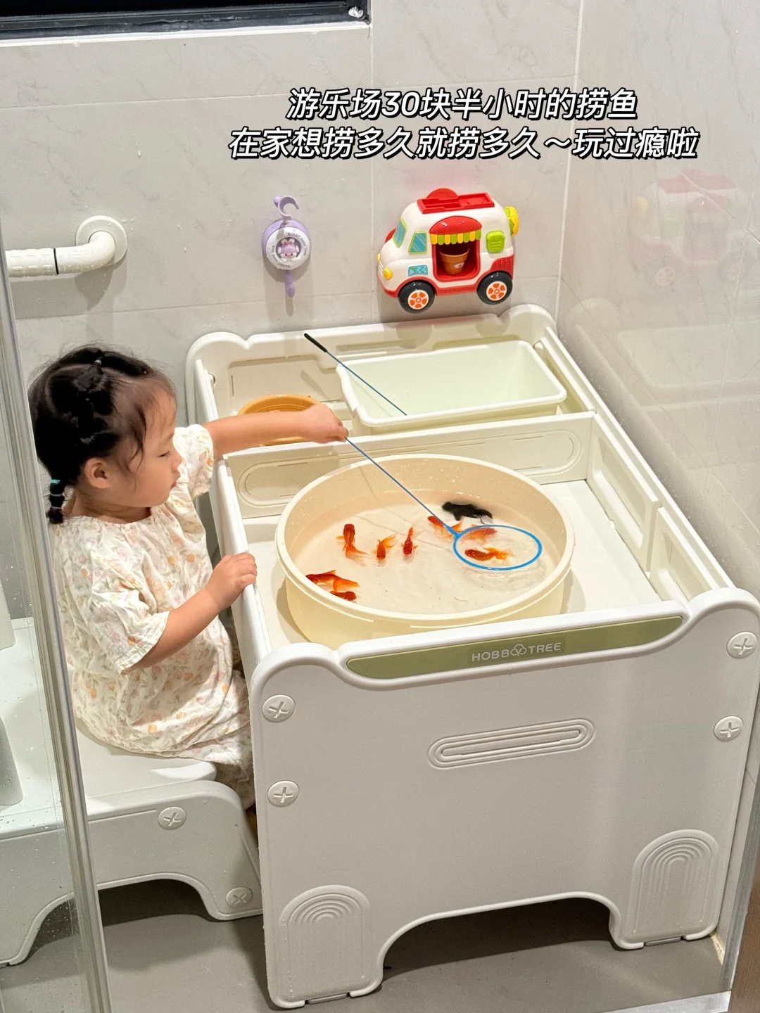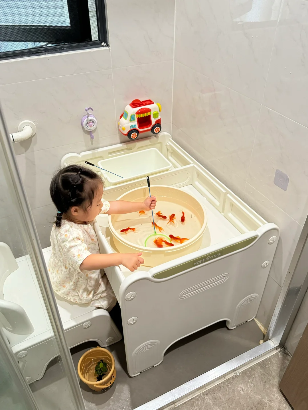 桌板打开可以玩沙粒、搭感官盆、做冰淇淋、捞鱼……