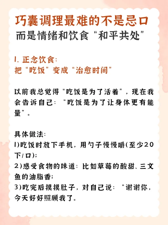 🍃1. 正念饮食:把“吃饭”变成“治愈时间”