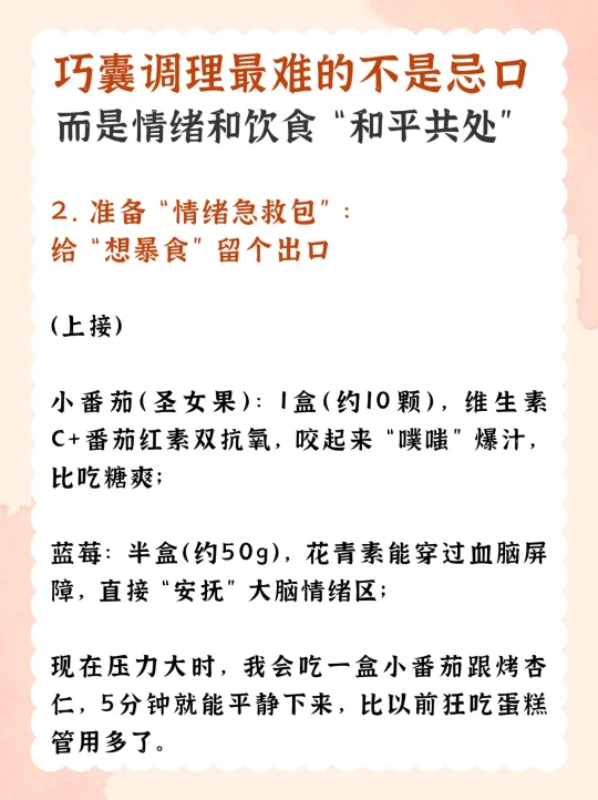 💡实际上,根据我给很多姐妹调理的经验来看,最难的从来不是“这不能吃那不能吃”,而是:怎么和自己的“焦虑脑”和平共处?