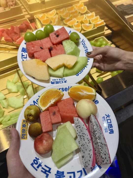 在EFC花得最值的一笔!!!78r无限畅吃各种韩式烤肉!! 现拌水果和牛敲新鲜!都是小哥明档现拌的! 烤虾🍤也是服务员帮忙剥的 满满一盘烤出来好满足~ 🍙韩式拌饭、🍗炸鸡、🍜冰冰凉凉冷面管够! 还有0r无限续自助糖水🍧 手作鲜奶茶🆓畅饮 种类真的超级多 蔬菜饮料水果小吃...通通随便拿!! 性价比绝了!很适合团建聚餐!! 本穷鬼真的爱s了...😭已经约好姐妹下周继续来战斗了!