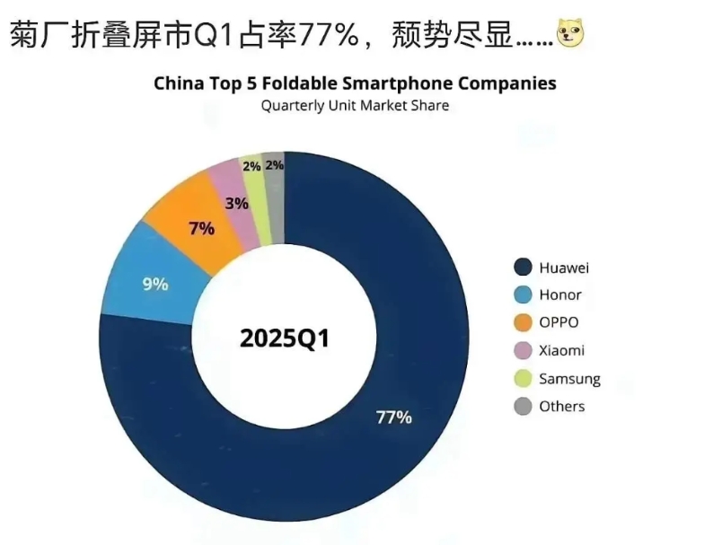 某品牌粉丝的水平也不行啊… 华为折叠屏手机占市场份额77%,这相当于什么呢?所以