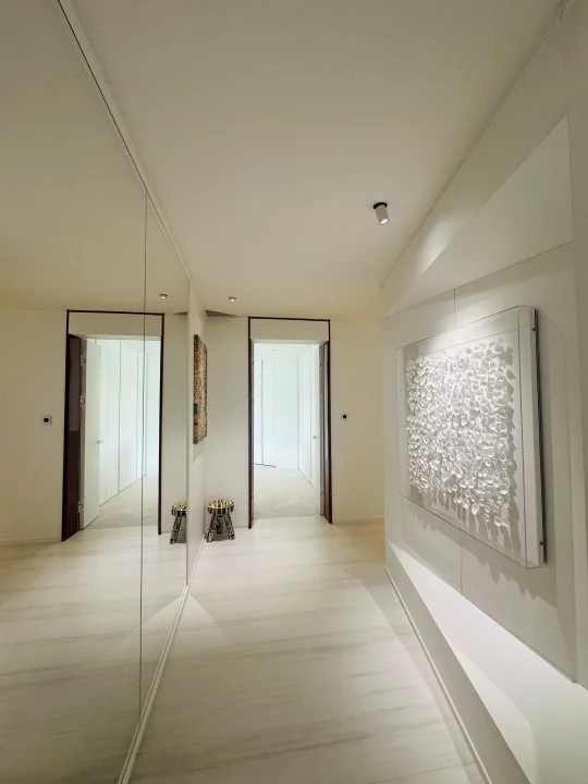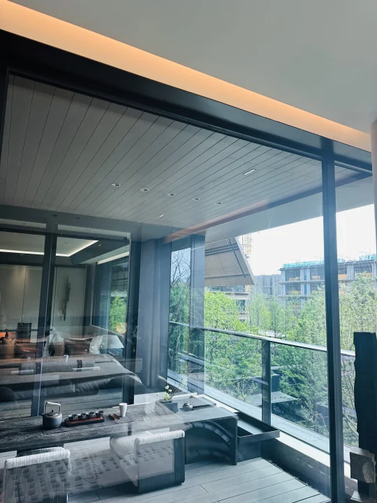 强调“自然先于建筑”,以非对称、去中心化的手法实现建筑与自然交融。户型设计注重引景入室,实现“开门见景”,通过内凹庭院和穿插式布局,在室内延续游园体验。例如385户型采用“第二起居空间”模式,形成多中心、非对称的流动格局,提供多样家庭使用场景,再现中国园林般的空间趣味