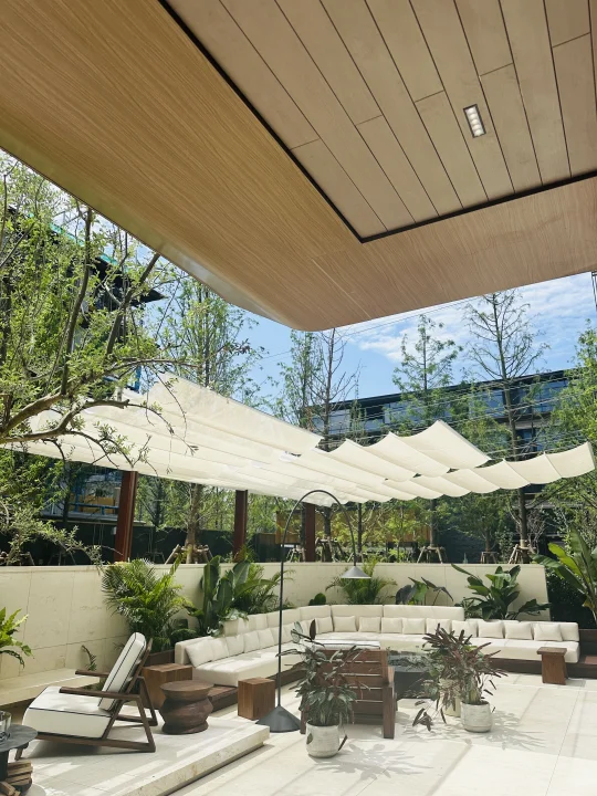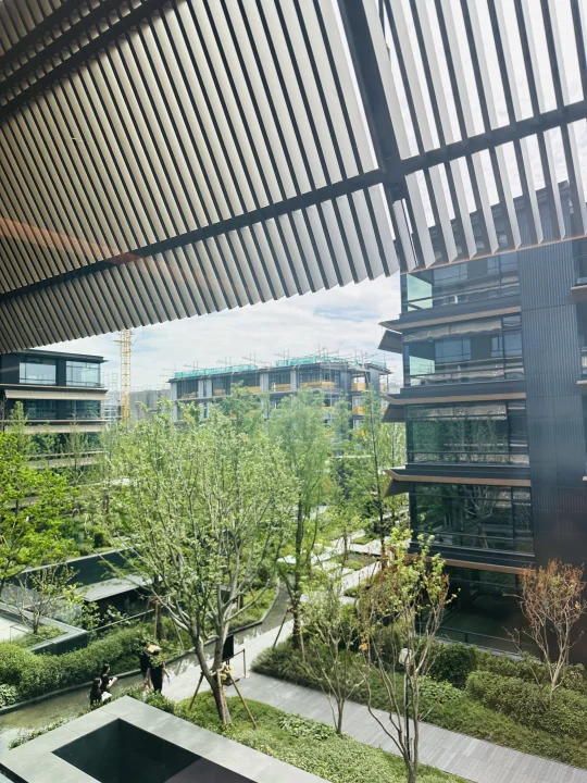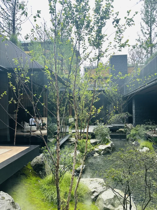 五个组团庭院尺度多样,最大进深约50米,分别赋予不同功能主题,如地下会所、儿童乐园等,融入溪流、竹亭、水榭等雅致景观元素,塑造可游可赏的东方意境。人流洄游其间,使整个社区成为一个灵动的大园林。