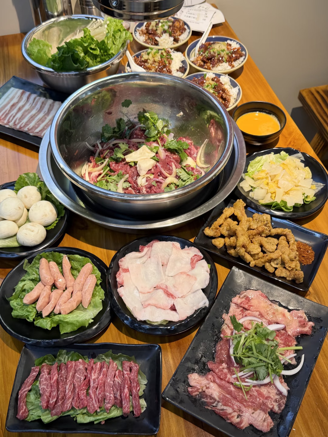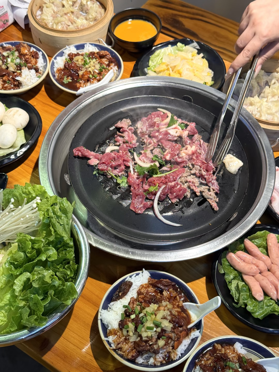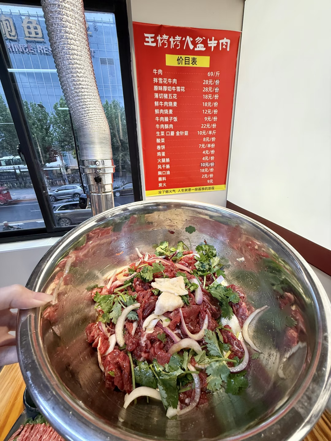 终于吃上工作日都要排队的烤肉了😭 都是牛肉都是现点鲜切🐂 现拌牛肉69r一斤 雪花牛肉28r 猪五花18r … 不敢相信这是昆山的物价!! 鲜牛肉烧麦每桌必点👍一口一个 还有不要错过9r的牛肉臊子饭 酱汁浓郁 牛肉份量超足拌上米饭🍚 真的一口下去敲满足🥹