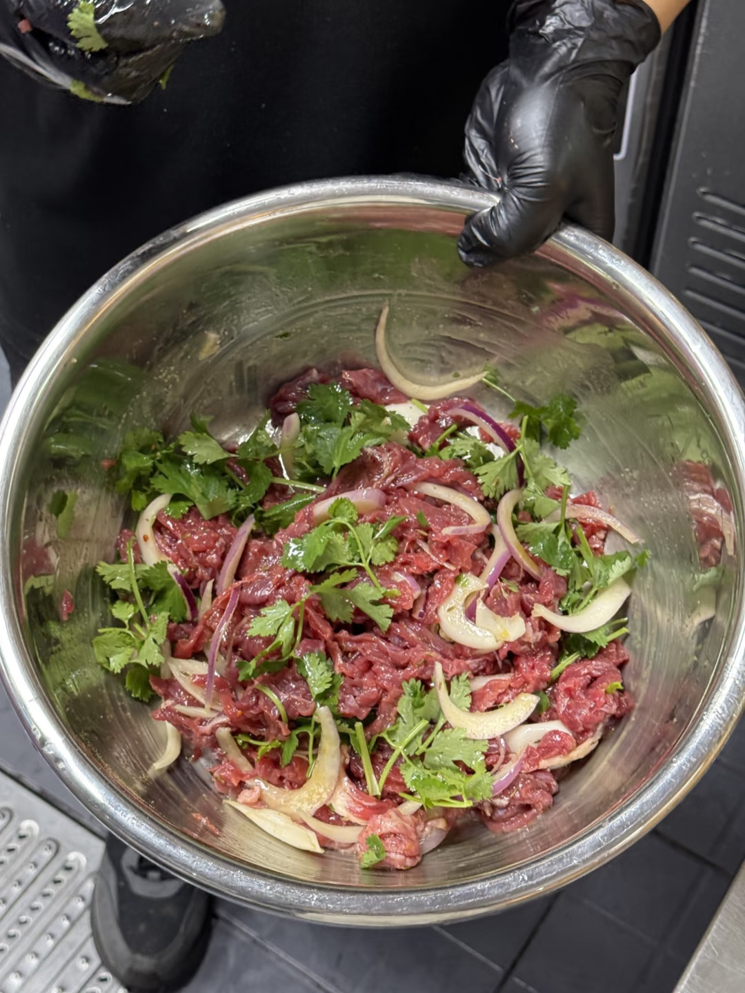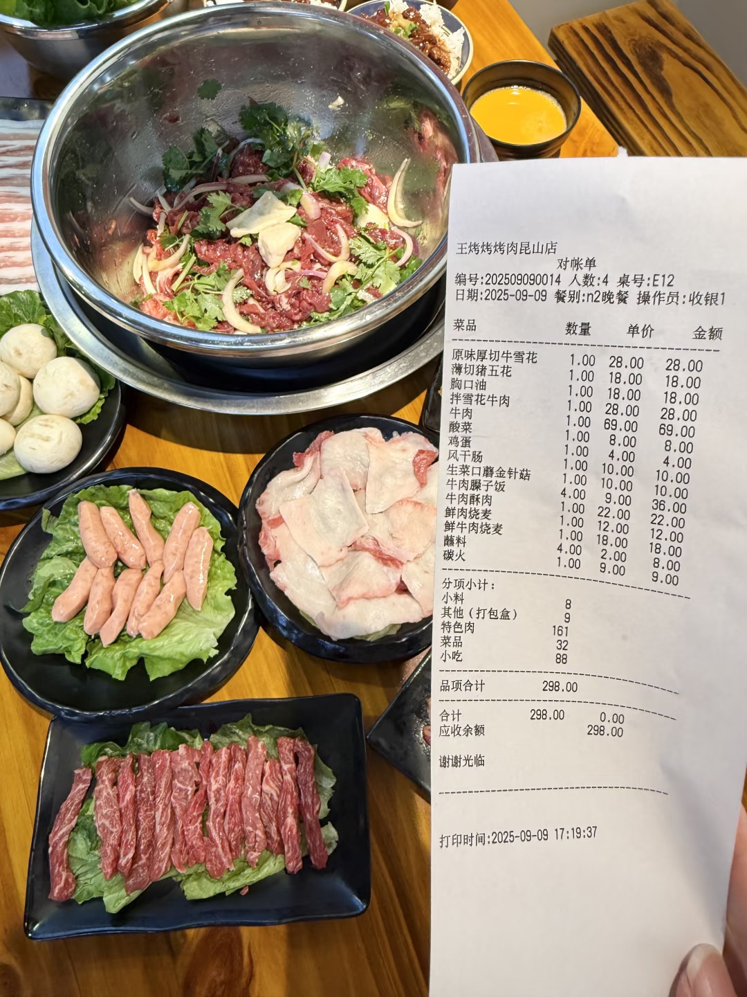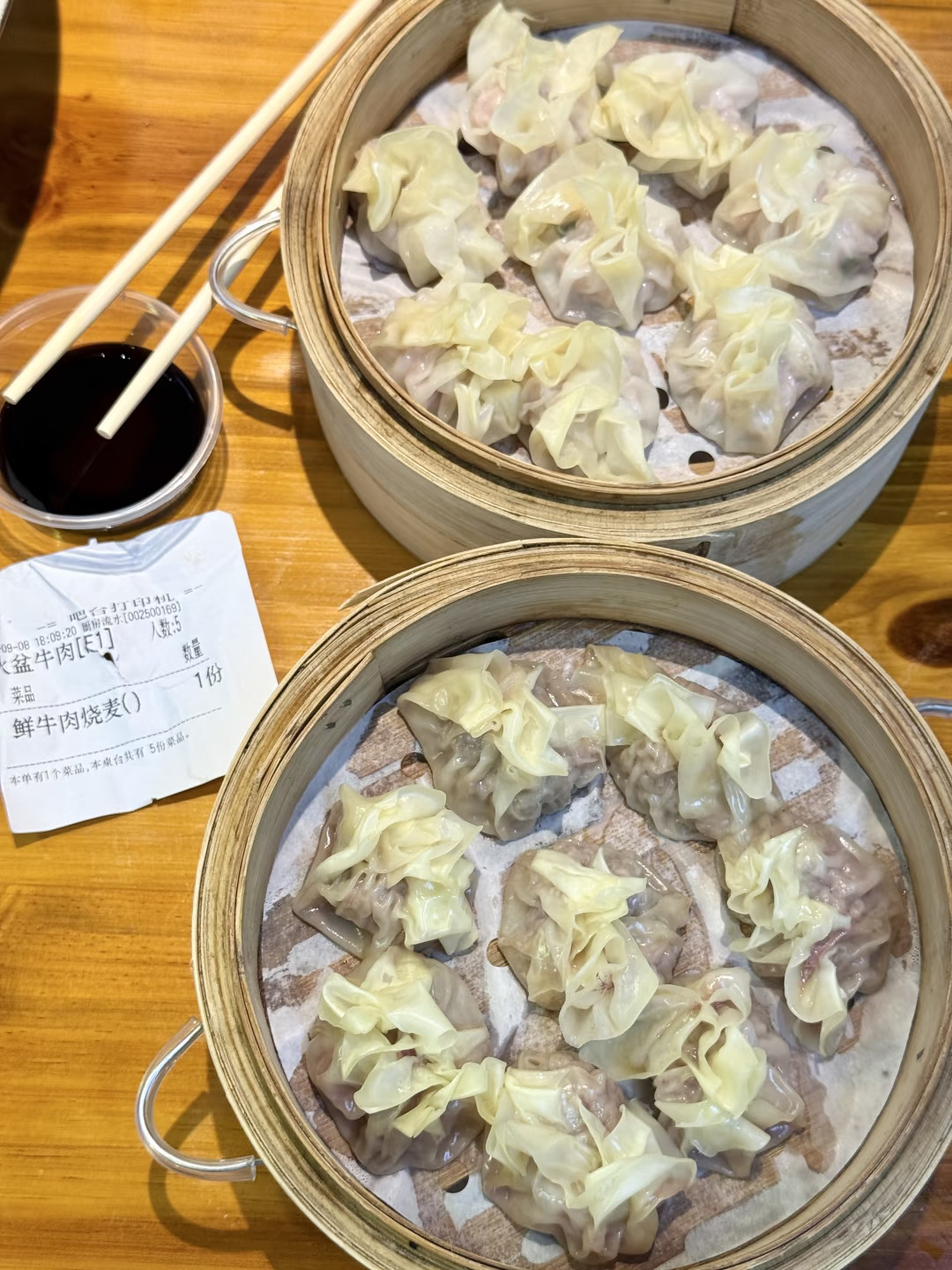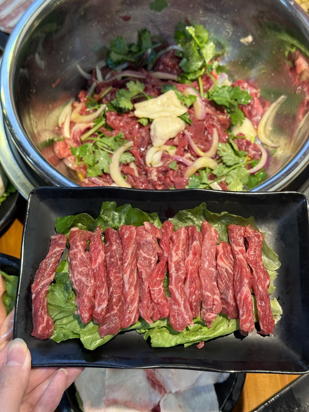 终于吃上工作日都要排队的烤肉了😭 都是牛肉都是现点鲜切🐂 现拌牛肉69r一斤 雪花牛肉28r 猪五花18r … 不敢相信这是昆山的物价!! 鲜牛肉烧麦每桌必点👍一口一个 还有不要错过9r的牛肉臊子饭 酱汁浓郁 牛肉份量超足拌上米饭🍚 真的一口下去敲满足🥹