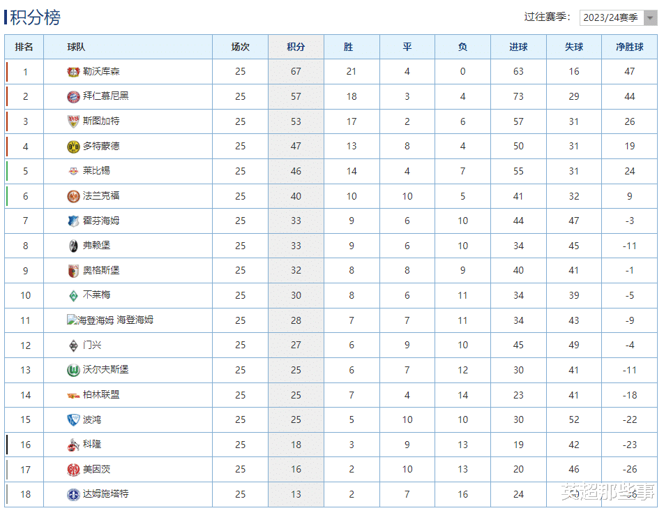 另一场比赛中,弗赖堡客场2-1击败波鸿,升至积分榜第8位,波鸿虽然输球,但是领先降级区7分,形势较为乐观。